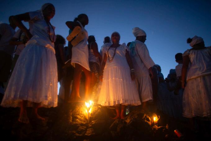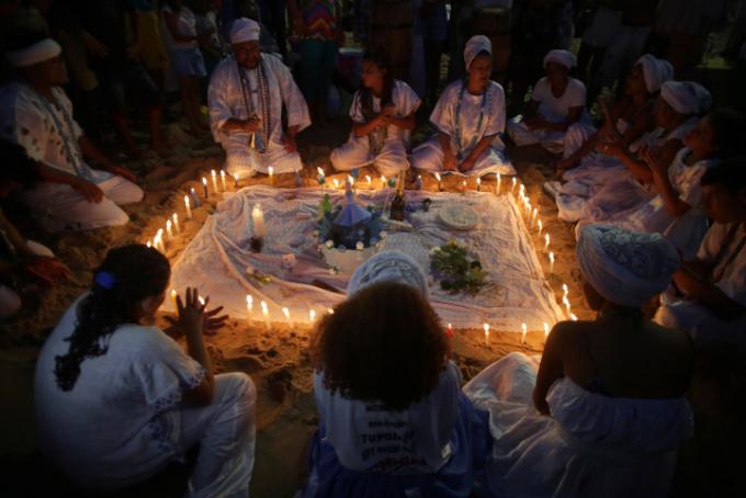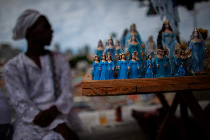 Essa concepção africana de sagrado se manifesta de diferentes maneiras e, com a diáspora decorrente da escravização, esse conjunto disperso se reinventou em diversas partes do mundo, materializando-se em crenças aglutinadas sobre a denominação de candomblé, xangô, batuque (variações do culto aos orixás, divindades da cultura iorubá ou nagô). Todavia, não somente os orixás foram trazidos pelos africanos no contexto das violências coloniais. Também vieram os inquices [entidades dos povos bantos] e os voduns – dos povos da língua fom, do antigo Daomé, conhecidos como jejes no Brasil. Esses cultos ainda foram traduzidos e geraram outras religiões e religiosidades no Atlântico Negro, a exemplo da umbanda no Brasil, da santeria em Cuba e do vodu no Haiti.