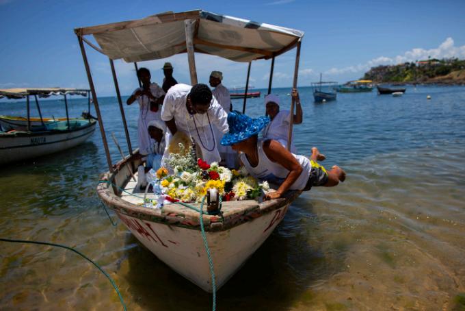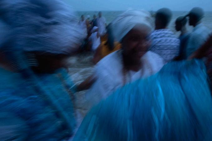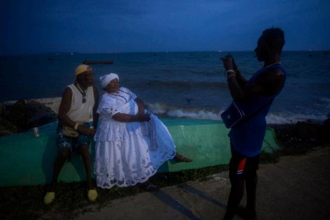 Na tarde do dia 2, atravessamos a Baía de Todos-os-Santos rumo à Ilha de Itaparica, onde a festa continua. No Terreiro Ilê Axé Opô Afonjá, um dos mais tradicionais da ilha, o cortejo segue até a Praia de Amoreiras. Senhoras baianas, vestidas de azul e branco, caminham com graça e firmeza, equilibrando balaios cheios de presentes sobre a cabeça. Jovens iniciados acompanham em silêncio, observando e aprendendo os gestos e os segredos da tradição.