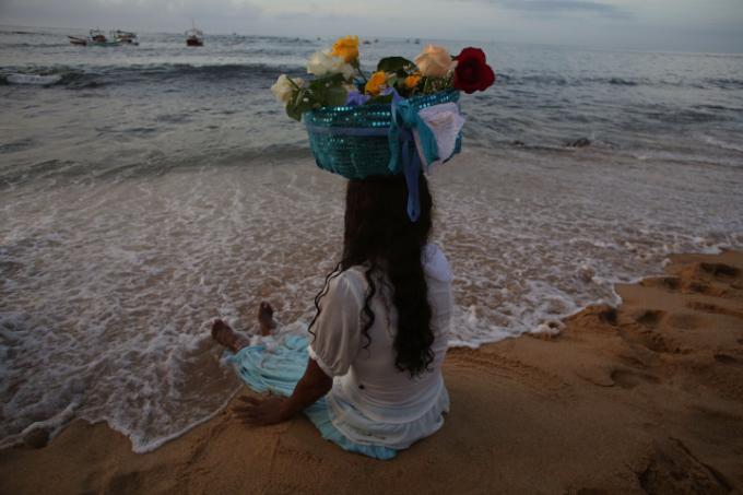 Com os primeiros raios do sol, as flores começam a ser lançadas ao mar. Os centros religiosos se reúnem em torno dos tambores sagrados, entoando cânticos, enquanto mães e filhos de santo incorporam a energia da orixá. As oferendas são organizadas em barcos que partem para alto-mar, conduzindo as dádivas para Yemanjá em uma travessia que parece costurar o mundo dos homens ao domínio das águas.