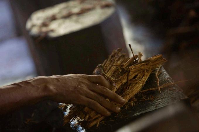 No Céu do Mapiá, a festa de São João começa dias antes em uma preparação que vai além dos altares e dos hinários. Pelas trilhas da floresta, as mulheres vão buscar a chacrona, colhendo com respeito as folhas que compõem o Daime. Enquanto isso, os homens se reúnem na bateção do cipó, golpeando o jagube com ritmo e devoção, preparando-o para ser cozido e transformado no chá sagrado. O som seco da madeira ressoa na mata como um cântico ancestral, um chamado espiritual que se materializa na própria floresta.