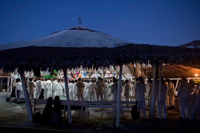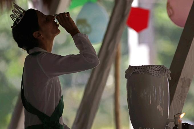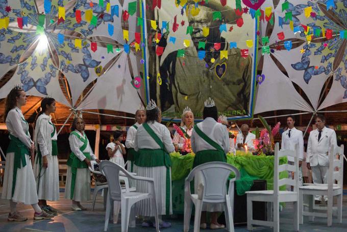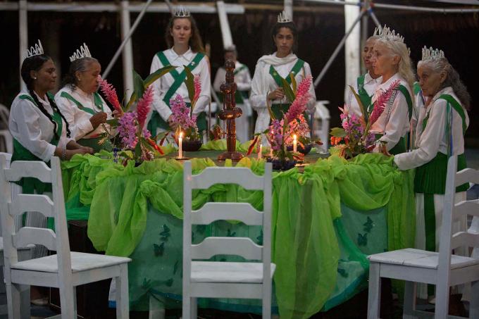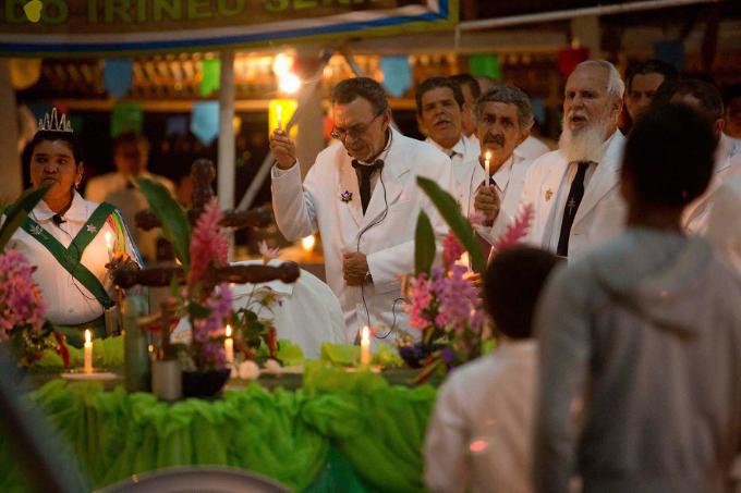 À noite, os hinários começam, e os maracás marcam o compasso das canções que atravessam gerações. Ali, a fé não é estática – ela dança nos corpos, ressoa nos cânticos, pulsa