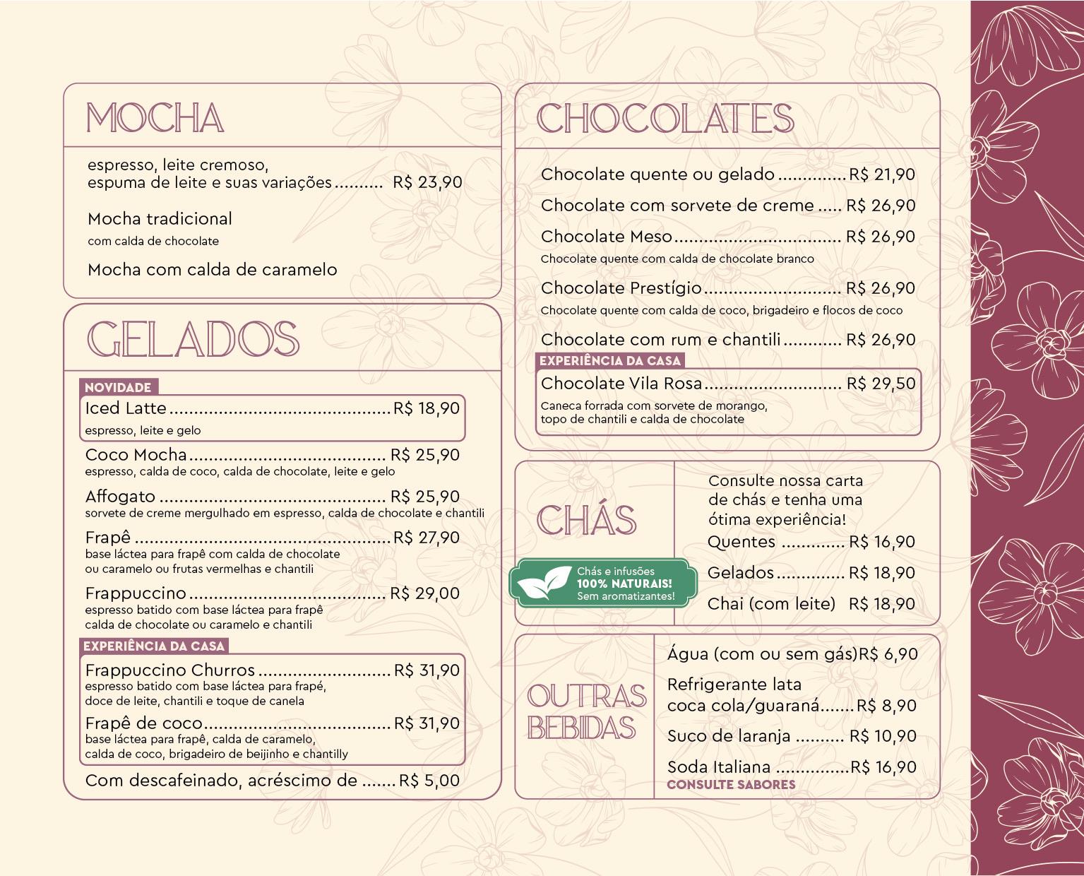 Cardápio Vila Rosa Café