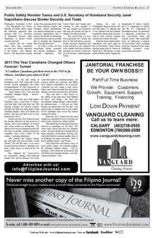 United States and Canada must continue to work together to not only expand our economies and spur job growth, but also to enhance our shared security.” “The Action Plan is a winwin proposition for Canada and the U.S. that will deliver concrete results. Secretary Napolitano and I look forward to our continued work together and these bilateral meetings are critical to drive the process forward,” added Minister Toews.