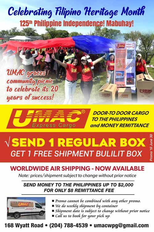 All photos & articles available online! FilipinoJournal.com 16 THE PULSE OF THE FILIPINO COMMUNITY SINCE 1987 June 20 - July 05, 2023 Celebrating Filipino Heritage Month 892 Sargent Avenue 204-984-1675 Leah.Gazan@parl.gc.ca LEAH GAZAN Your Member of Parliament Winnipeg Centre