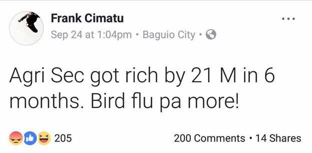 Cimatu’s post on Facebook had the intention to “injure the reputation, credit and virtue of Piñol and expose him to public hatred, discredit, contempt and ridicule.” The decision read “Taking into consideration the words used by Cimatu and the subject Facebook post which appears to be an imputation of a crime, the same is defamatory and thus, satisfy the first element of the crime of Cyberlibel.” The judge further ruled that Cimatu failed to show any proof that “his post was done in good faith.”