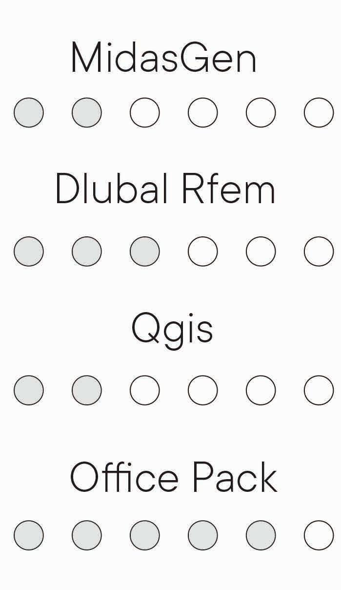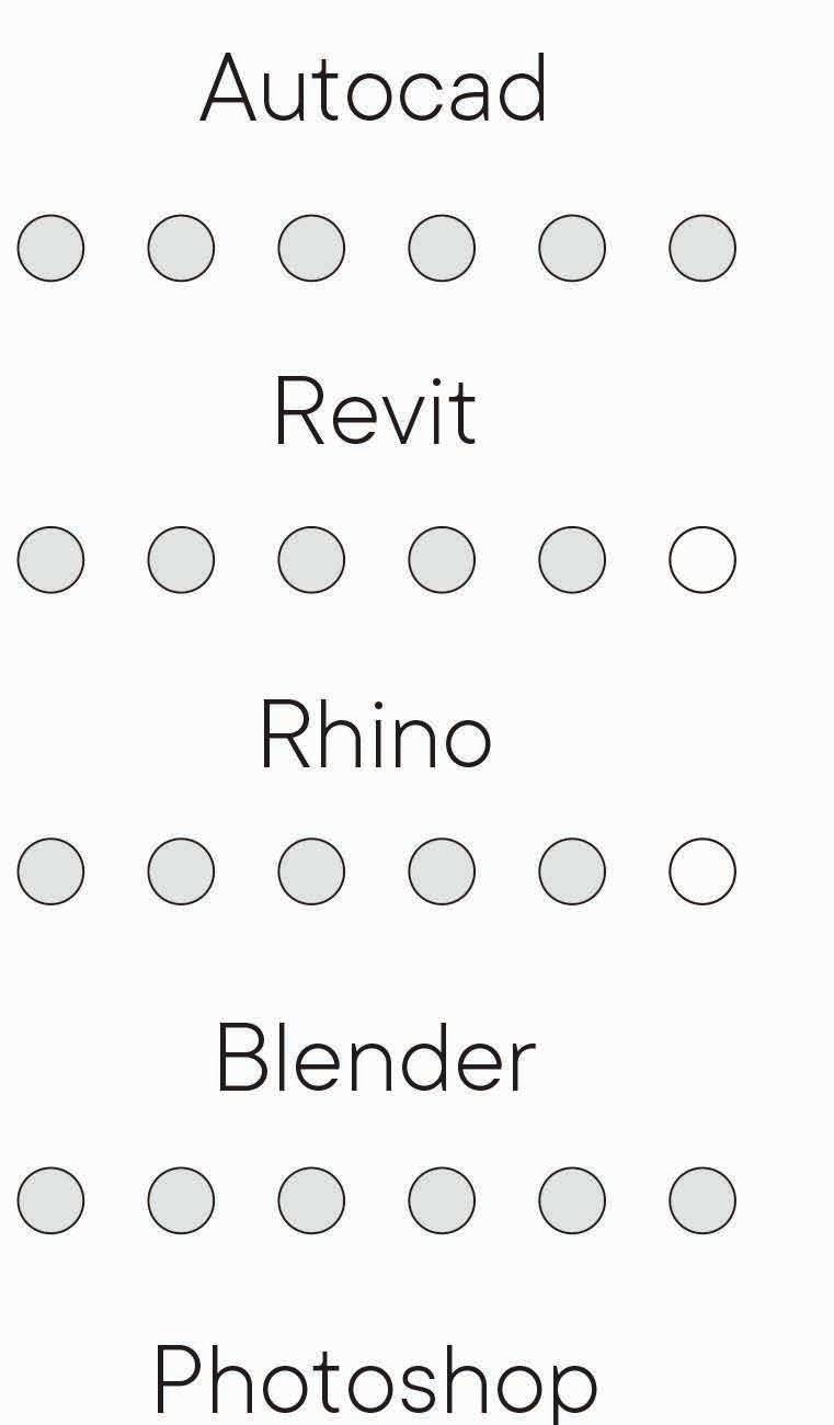Main tasks: Autocad, Photoshop, Blender, Rhino, MidasGen