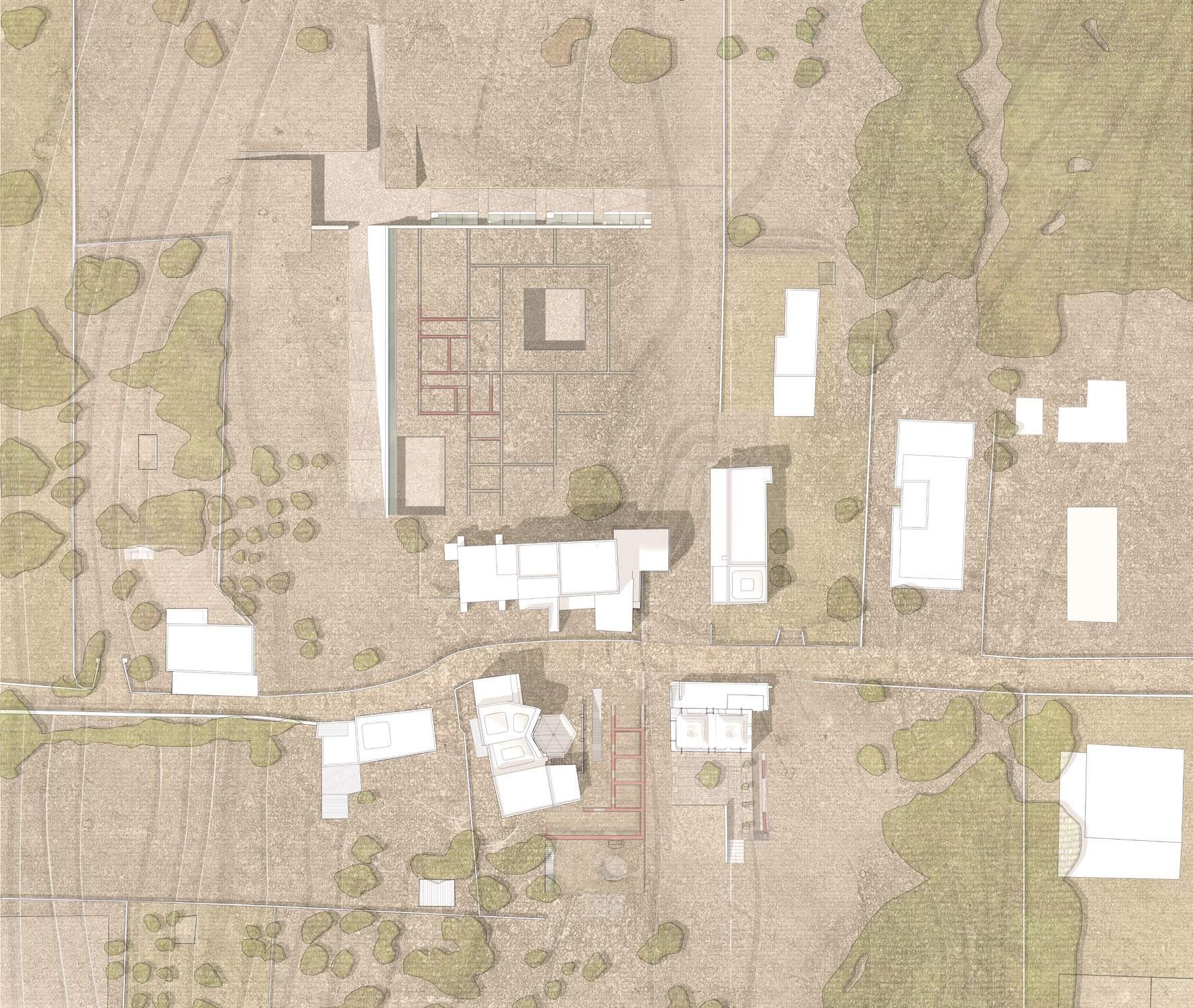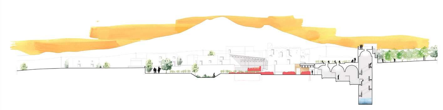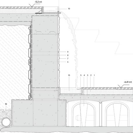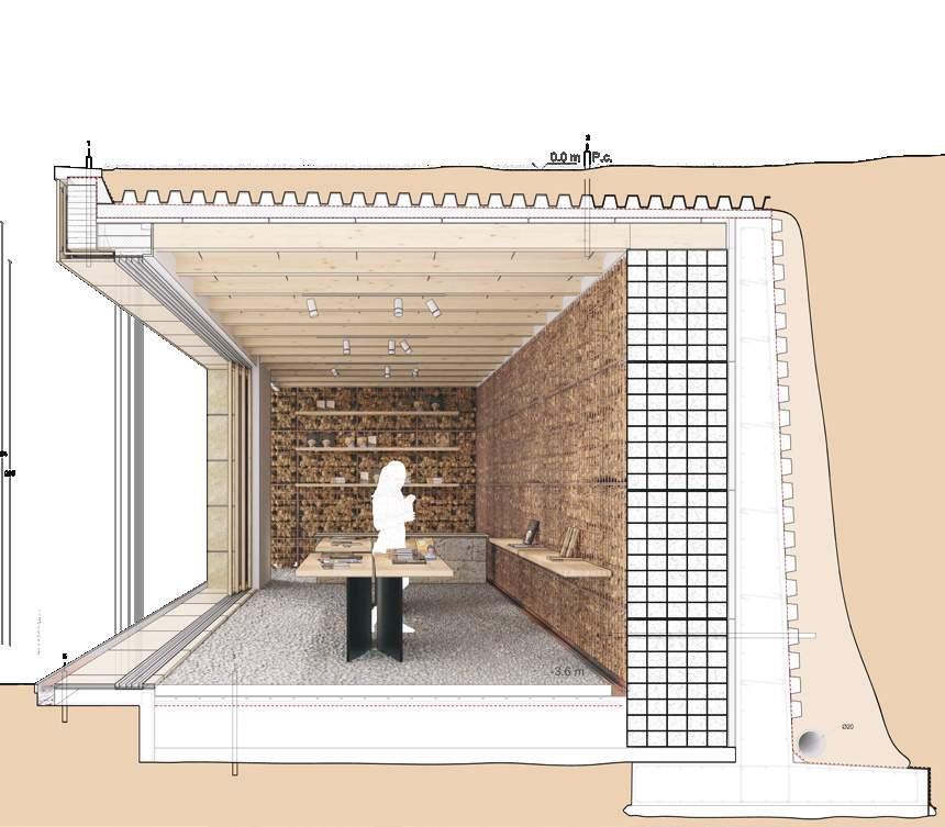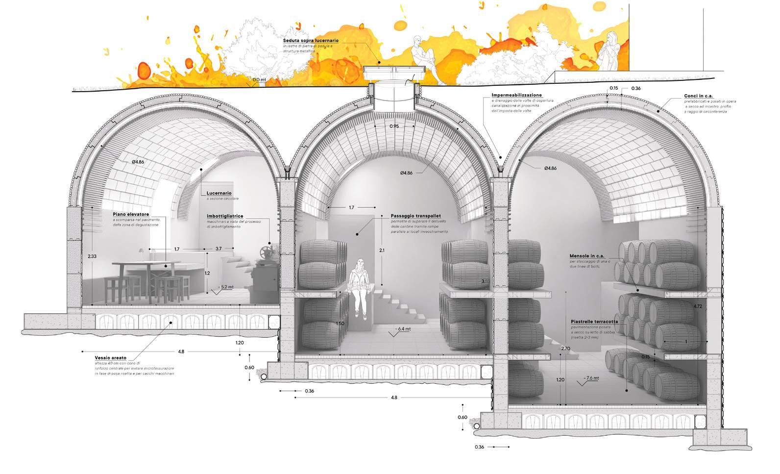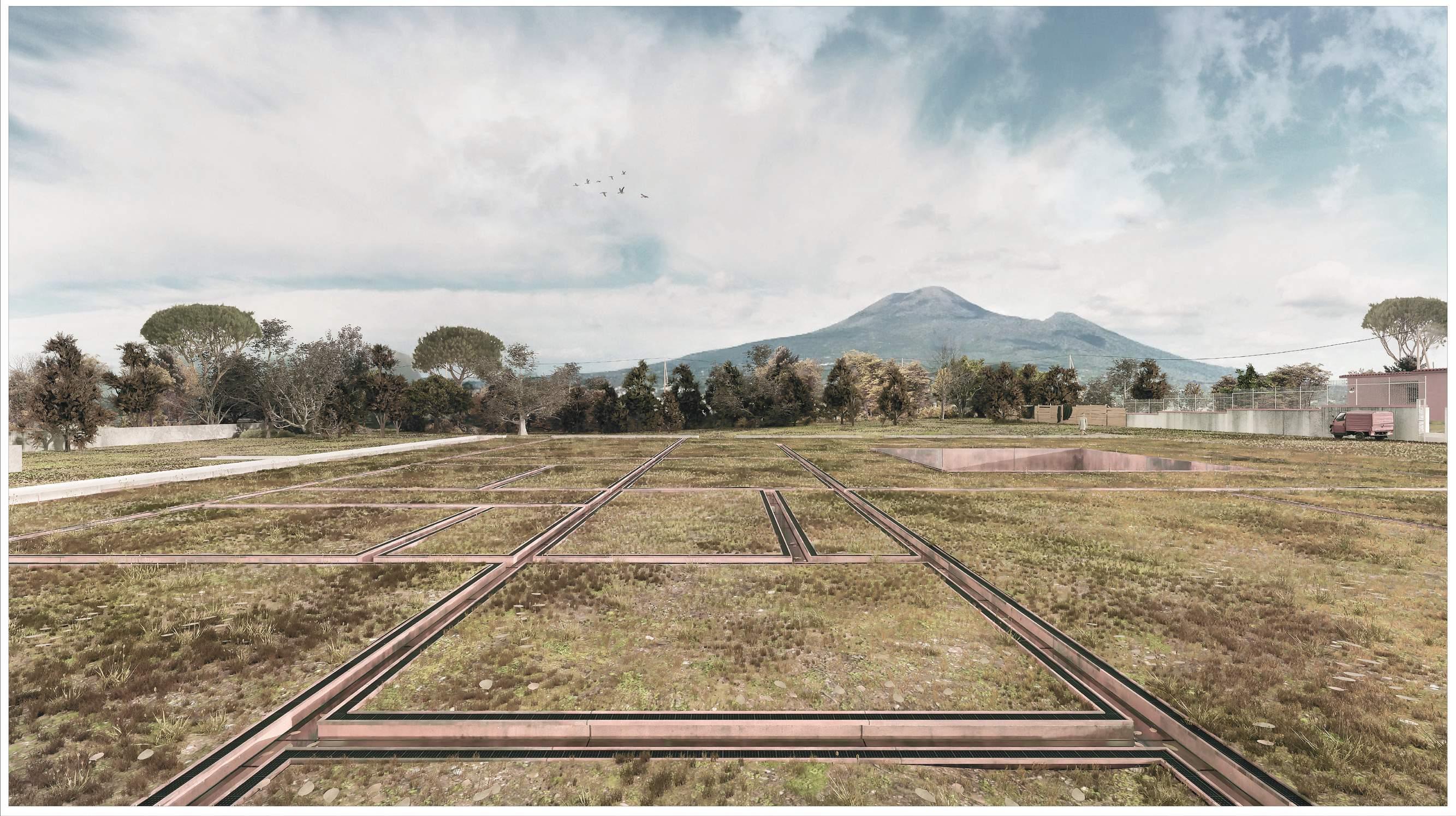 The winery project in Pompeii is located north of the archaeological site, a 5-minute walk away. To avoid disturbing the wonderful rural landscape of the Pompeian suburb, the building is entirely semi-subterranean The above-ground structures are made of