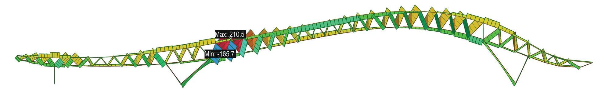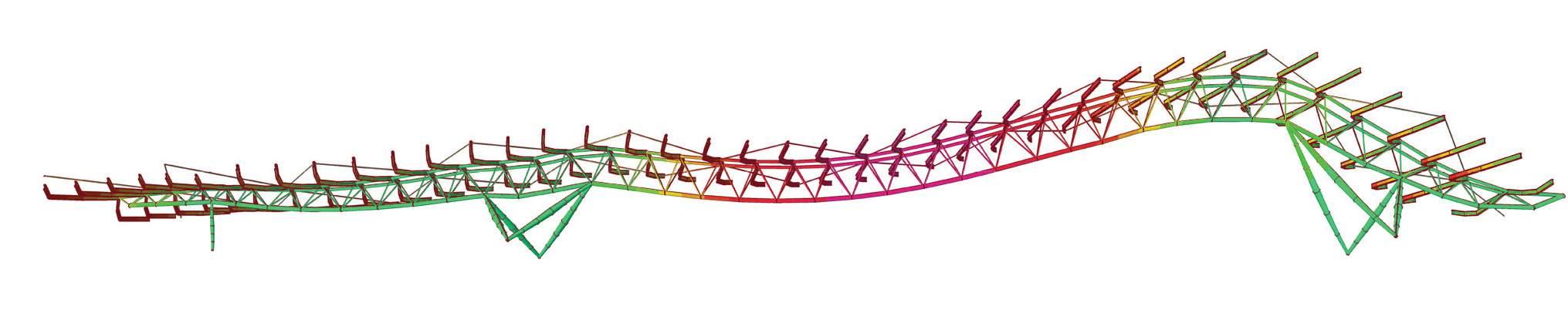 Thanks to the possibility of having complete access to construction details and structural drawings, I was able to develop a study that delved into the functioning of Kensay Airport’s steel structure through modeling first on Rhino and then importing and characterizing it on MIDAS for FEM analysis.
