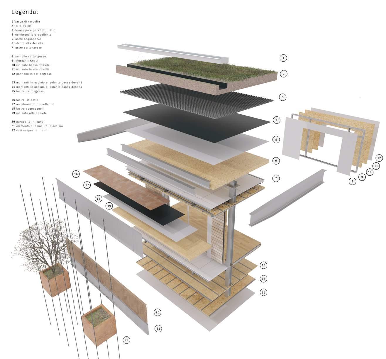 This office building is located in the historic center of Milan, and the design of its facades is directly influenced by the city’s twentieth-century architecture. The steel and cross-laminated timber frame is covered by local stone slabs at the base and prefabricated white concrete panels . The entire building is topped with a usable green roof designed as office relax area.