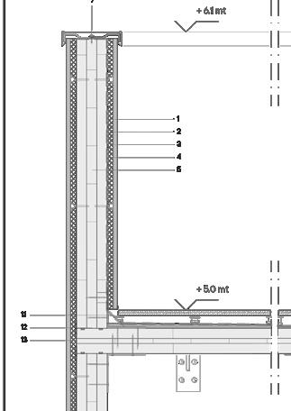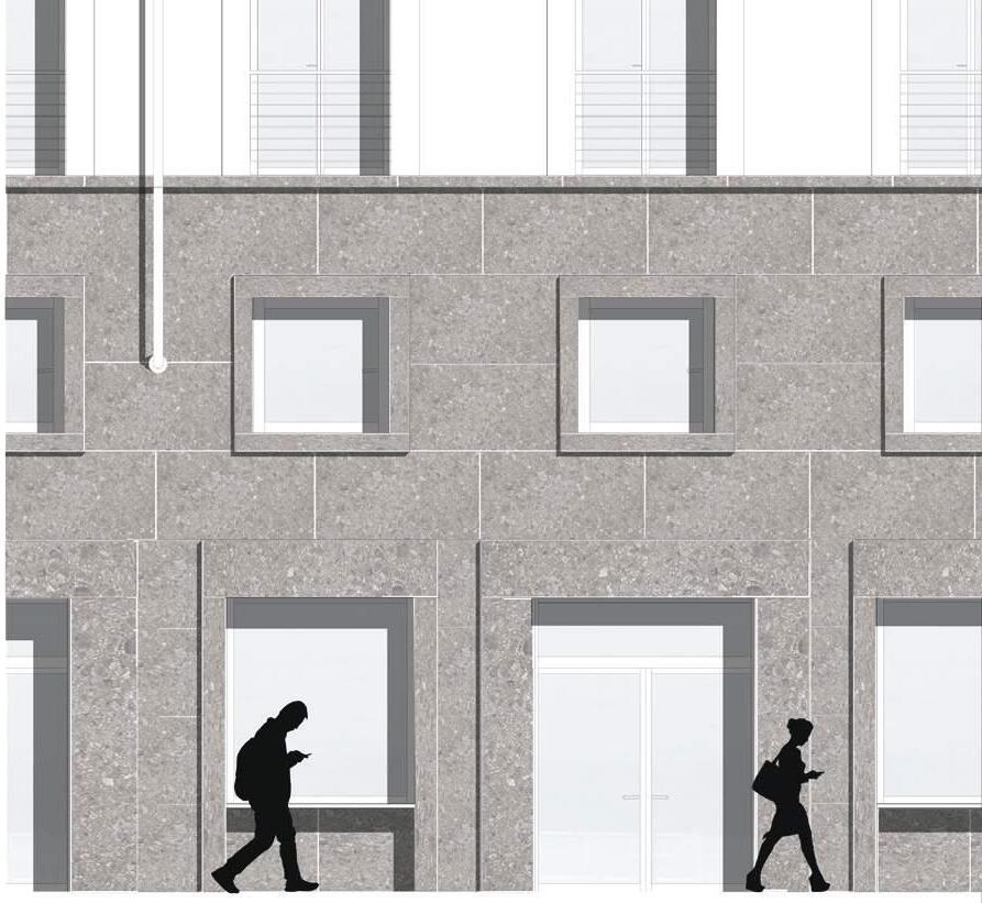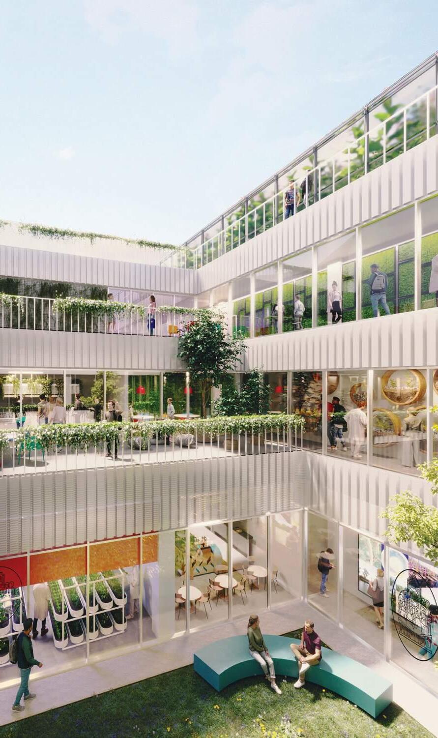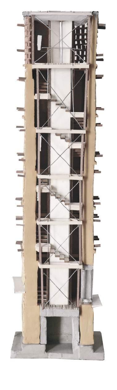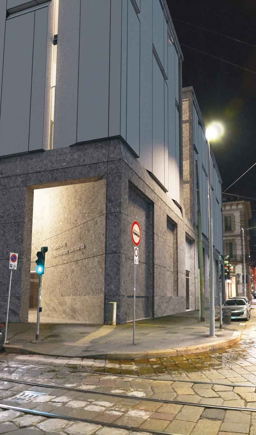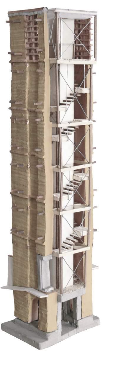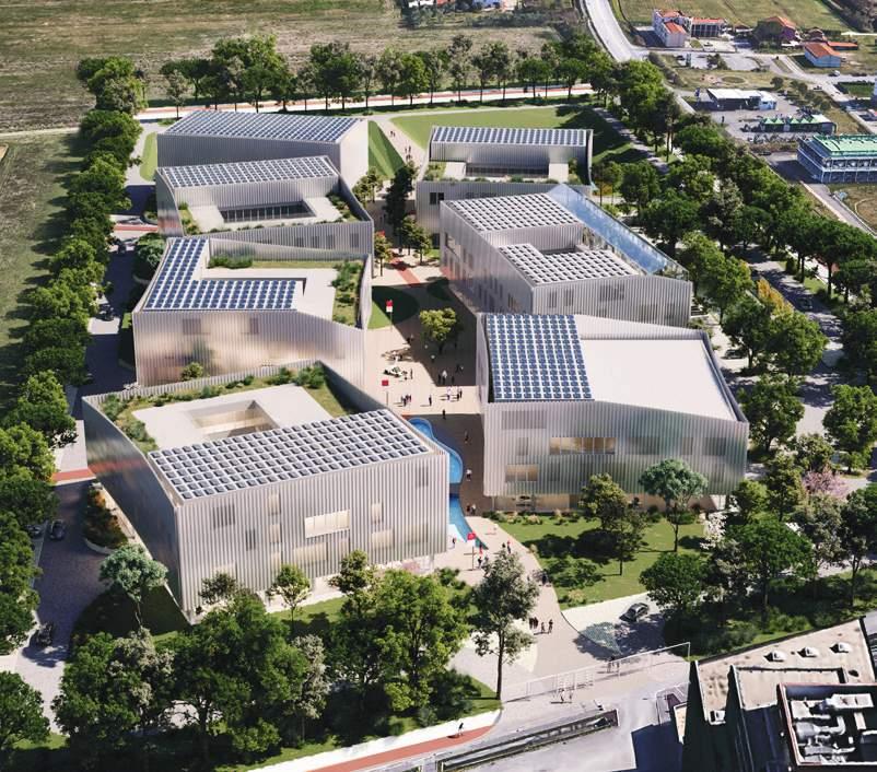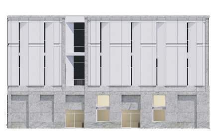 fabricated concrete sandwich panels, to which is attached a skin made with a perforated metal mesh that allows visibility and passage of light. Collaborating with the team, we have developed the drawings for the execution phase of the first four buildings, scheduled to go to the construction site in 2024 for the project’s realization. I had in those months the opportunity to oversee various design aspects of each building.