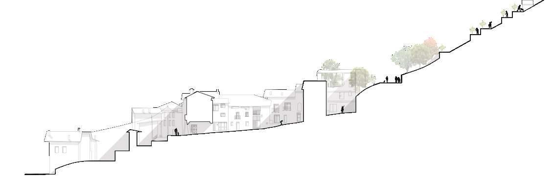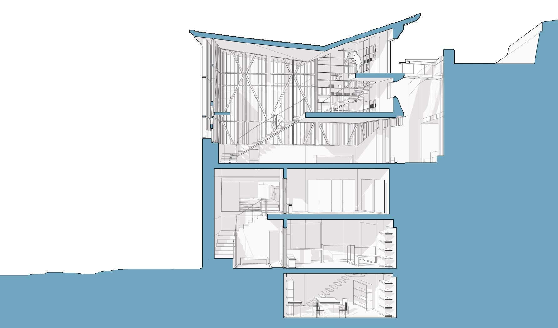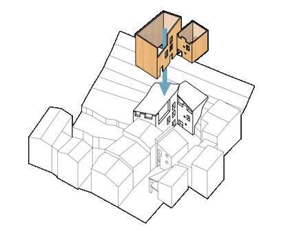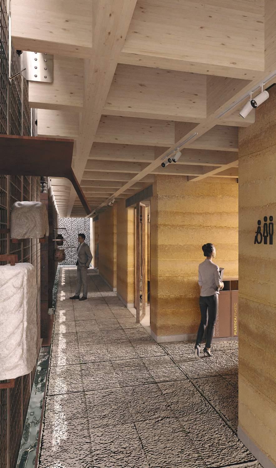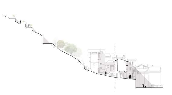 a consolidated stone ruin with a Xlam framework. The spaces develop from the most private downwards to the most public, with access from the street to the double-height space to view the artworks by walking around.