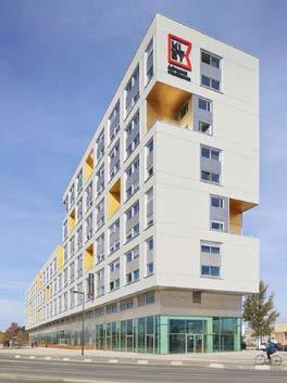 A 7,000 sqm open-air parterre with over 130 trees and rooftop terraces enhances the campus. Built with a modular steel and X-Lam timber system, the project ensures sustainability while seamlessly integrating with the city.