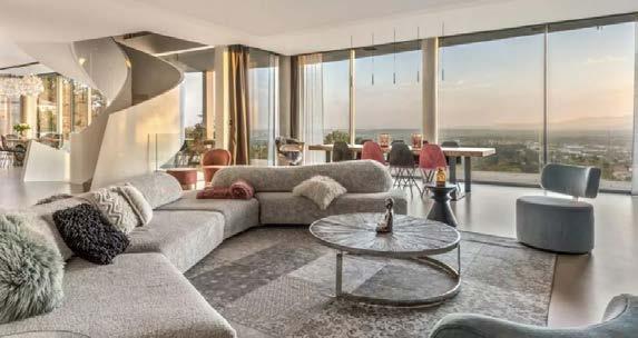 The living room is thoughtfully designed as an arc that opens to the landscape, allowing for stunning views and abundant natural light. The villa takes advantage of the site’s slope, creating a seamless integration with the terrain.The layout includes intermediate levels that enhance functionality, featuring a spacious living area and kitchen, expansive terraces with a pool, as well as private rooms, a sauna, and a gym. This design not only promotes a luxurious lifestyle but also fosters a strong connection with the natural beauty of the region.