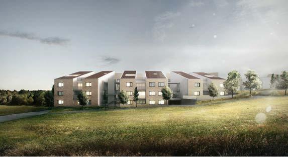 Constructed with durable materials like brick and aluminum, the design features inclined roofs, duplex layouts, and large private terraces. A central garden encourages community interaction, while ample openings enhance natural light and ventilation. With views of the countryside and vegetated rooftops, the project promotes sustainability and biodiversity. This development embodies a harmonious blend of modern living and nature, creating a vibrant and sustainable community.