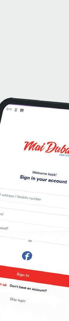 Download Now maidubaiwater.com Order water on the go! Express delivery Seamless navigation Deals & o ers Ease and convenience E-Wallet