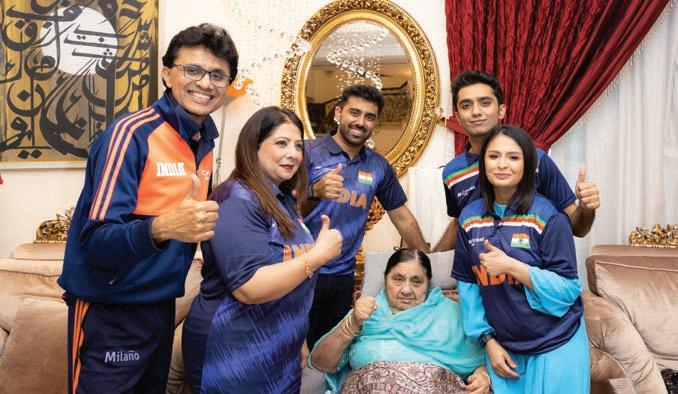 Anis Sajan (R) with former UAE Captain Khurram Khan Anis Sajan, Rubina Sajan, Azhar Sajan, Gulbano Sajan, Sahil Sajan and Mehreen K