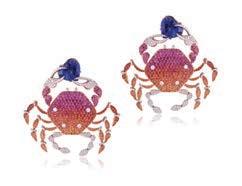 The team at Pavit Gujral Designs painstakingly recreated the shades and shadows of the crab’s shell by expertly setting over 800 pieces of Orange Sapphires, Pink Sapphires, Yellow Sapphires and Rubies to create a stunning ombre effect. What takes the cake is the Crab’s tiny arms displaying movement and balancing beautiful Tanzanite hearts with their jewel-studded claws!