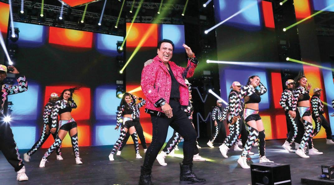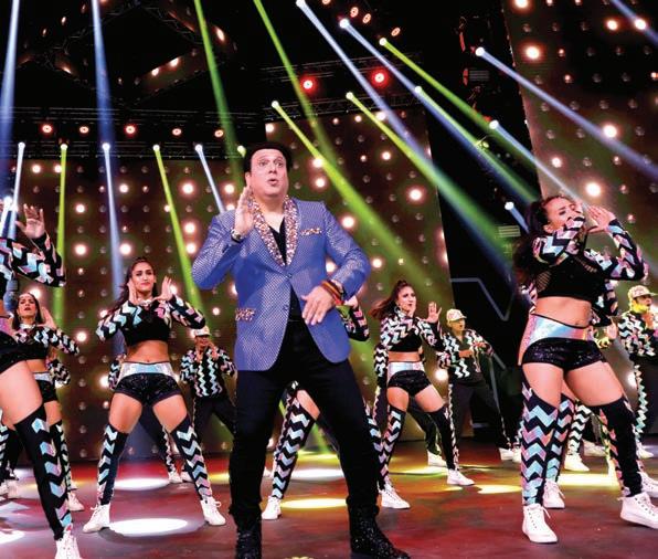 (L-R) Mr Rizwan Sajan, Maniesh Paul, Ranveer Singh, Sunita Ahuja, Arjun Kapoor, Ayushmann Khurrana, Nushrratt Bharuccha, Mouni Roy and Sophie Choudry enjoy Govinda’s electrifying performance