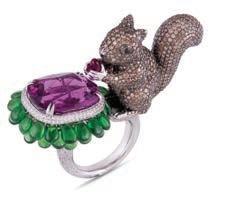 A significant number of pieces in the brand’s collection are reflections of the sights and scenes that are ever-present in nature. One of the pieces that capture the true essence of nature is the Squirrel ring. Like its name suggests, the ring is inspired by the high-spirited Squirrel, an animal that is notoriously known for its love for berries, nuts and fruits! Being one of Pavit’s most favourite spirit animals, the ring displays the exact same joyousness that a squirrel shows when you see it holding its prized possession - a berry, in its little arms right in the moment of relishing it! The squirrel ring is set in 18K gold, with a beautiful 17.94 Carat cushion pink Tourmaline and is flanked by Tsavorite drops and diamonds. The team at Pavit Gujral Designs have also added texture to the ring by setting the Squirrel in shades of Brown Diamonds, keeping in mind its features.