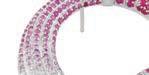 Set in 18K gold with over 4,000 stones - rubies grading into pink sapphires and diamonds, the pièce de résistance simply, is the pear-shaped brilliant Tanzanite representing the deep blue ocean.