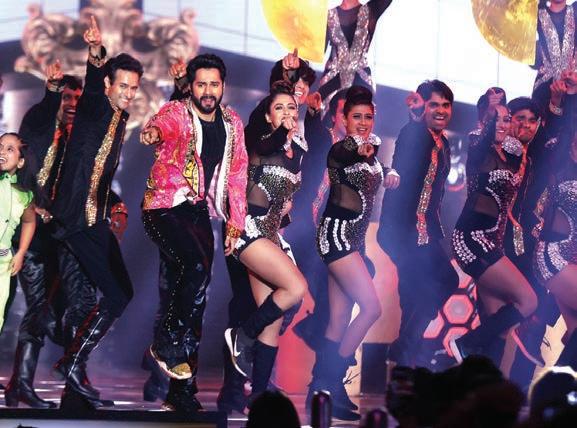 a decade in showbiz by dancing to a medley of his hit songs. From Tera hero idhar hai, to Husn hai suhana, Tamaa tamma again, Garmi, and the intro theme from his forthcoming film Bhediya, his moves made the audience groove along with him. 8 FILMFARE MIDDLE EAST November 2022