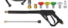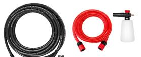 Vaahdotuspistooli suutinputkella ja vaahdotussuuttimella pesuaineen levitykseen. Pesuaineinjektori, säätöventtiili ja pesuaineen imuletku imusuuttimella. Pesuaineen sekoitussuhteen säätö venttiilillä. Käyttöpaine: max 310bar