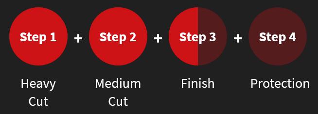 Häikäisevä vaihtoehto hiontajälkien nopeaan poistamiseen. Tarjoaa optimaalisen yhdistelmän hiontajälkien poistamiseen ja kiillon tuottamiseen autojen kirkkaissa pinnoissa. Erinomainen kiilto.