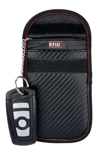 Like a vault This handy twocompartment holder prevents key cloning (yes, that’s a thing). The Velcro closure enables quick access, and basket-weave polyester provides a tough but elastic exterior.