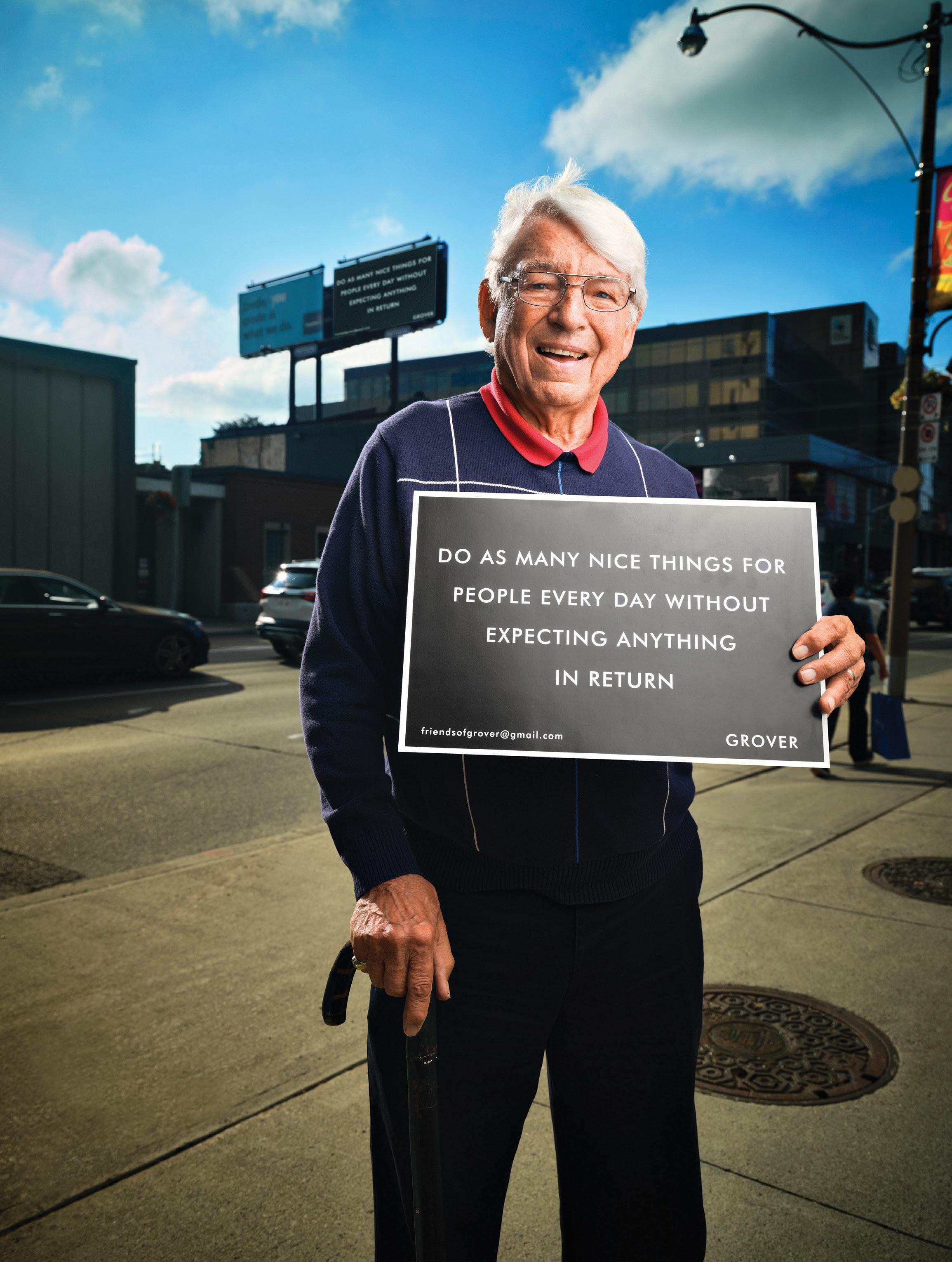 It wasn’t long before a sign featuring his heartwarming message—with his nickname, “Grover,” and a matching email address also on display—went up. Bower’s billboard quickly caught the attention of passersby and news outlets like CP24 and CBC. He received over 140 emails sharing feedback and simple messages of thanks for helping to spread positivity. He responded to every single one. The billboard “made people say ‘I can do that’ or ‘I should do that more often,’” he says. “Or it even just made them smile.”