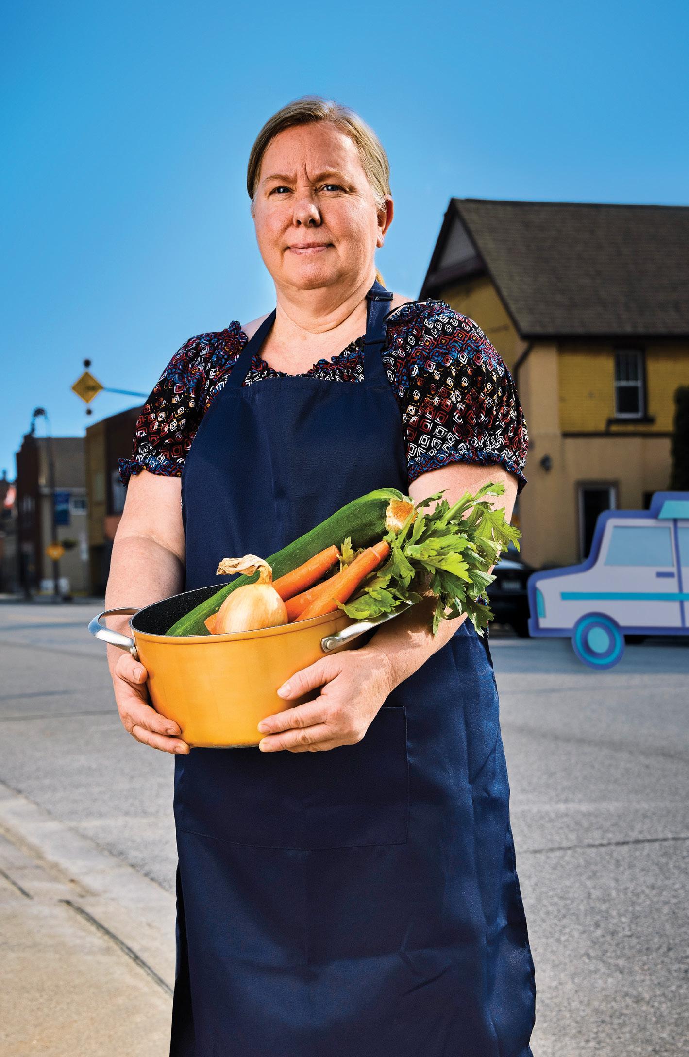 Every Friday, volunteers and community members come together to prepare Friendship Soup. Doucet and the kitchen volunteers at Ashley’s Place turn donations they’ve received into a heart-warming dish served up for the Tilbury community and beyond. There’s no fixed recipe—instead, local farmers and community residents generously donate ingredients like fresh vegetables, poultry, broth and flour, which are then transformed into hearty soup. “ You don’t have to be struggling financially to come in for free soup,” says Doucet. “It’s a great way to gather with friends and be a part of something really special.”