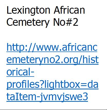 William's Lexington [Kentucky] Directory, City Guide, and Business Mirror, Volume I, 185960",compiledbyC.S.Williams,Lexington,[Kentucky]:Hitchcock&Searles,1859, https://www.kykinfolk.org/fayette/free_persons_1859.htm;June29,2023.
