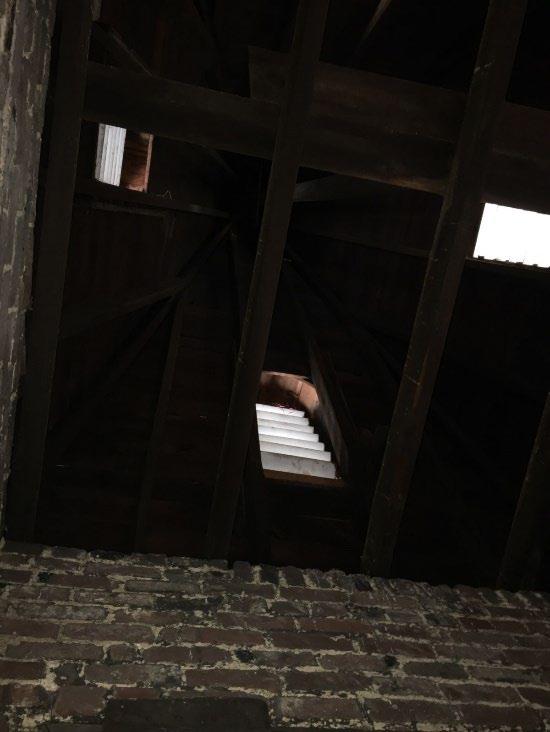 In addition, a hidden, narrow staircase behind the pulpit rises steeply and twists until it comes to the door of a small room above the sanctuary, a hidden Underground Railroad Station (UGRR).