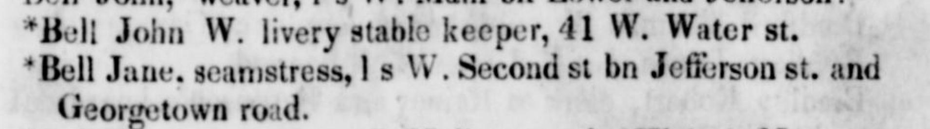 John W. Bell is listed on page 41 in the 1838 City Directory as a “livery stable keeper at 41 W.Water St.”