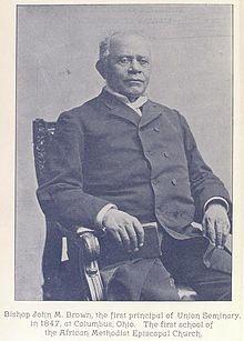 Bishop John Mifflin Brown was born September 8, 1817, in Odessa, New Castle County, Delaware, and died March 16, 1893. His grandfather was a Methodist minister. He joined the AME Church at Bethel in Philadelphia in 1836 and in 1846 he became a deacon. He was ordained a Bishop in May of 1868 and at the time of his death, he was the Presiding Bishop of the Eleventh (11)Episcopal District. The Eleventh (11) Episcopal District included Kentucky and Tennessee.