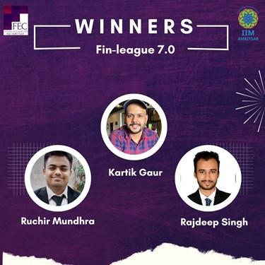 students' business acumen to the test and help them keep their minds sharp and ready while fostering a competitive environment. Winners of Fin-League quizzes were awarded prizes and certificates. The competition is organized in a league format, consisting of three progressively challenging rounds. The quizzes encompass a broad range of topics from the domain of Finance and Economics, providing a unique and enjoyable way to comprehend the relevant concepts and principles.