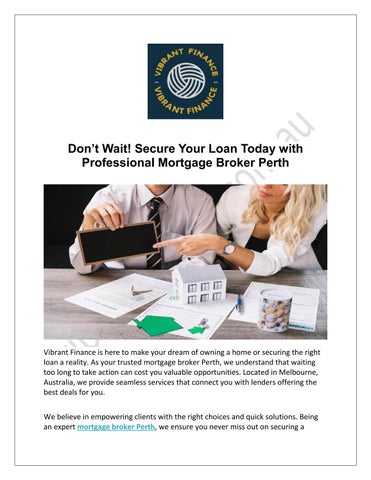 Vibrant Finance is a well established Melbourne based financial services business, and it deals with helping first home buyers Perth and property seekers in Perth and beyond. Our experienced home loan brokers offer personalized guidance and competitive products to help make the process of securing a home loan easy and hassle-free. We understand to help Perth first home buyers during every stage of their quest, offering specialized money solutions according to individualized needs. Through experienced advice and tailor-made assistance, we promise to transform dreams of being a homeowner into a reality. Contact Vibrant Finance, one of the reliable home loan brokers Perth today!