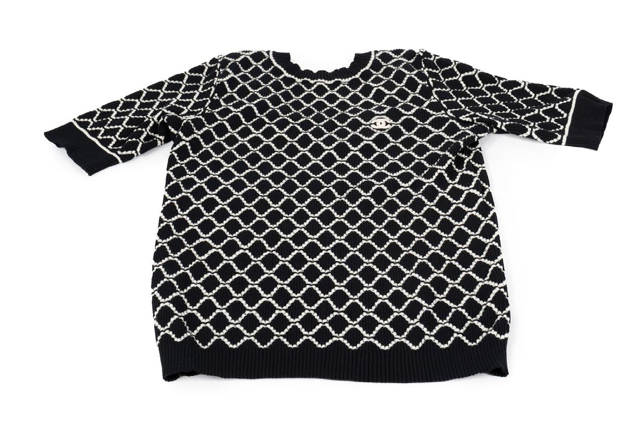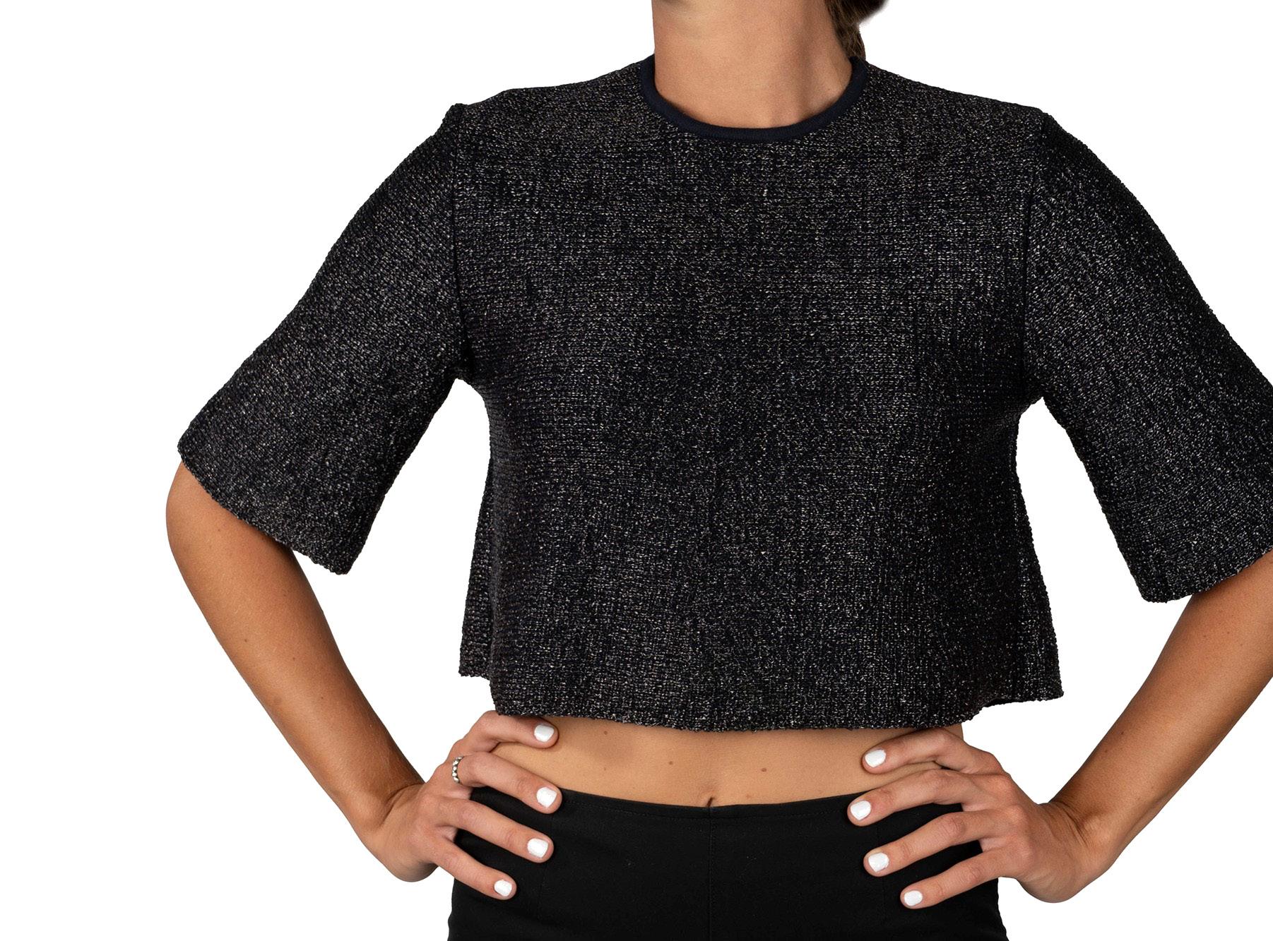 TOP in cotone e tessuto lucido color blu notte, tg 38 francese