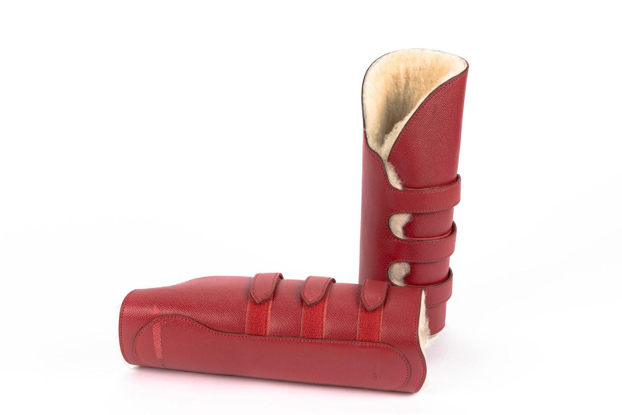 COPPIA DI STINCHIERE DA CAVALLO in pelle epsom color rosso (difetti)