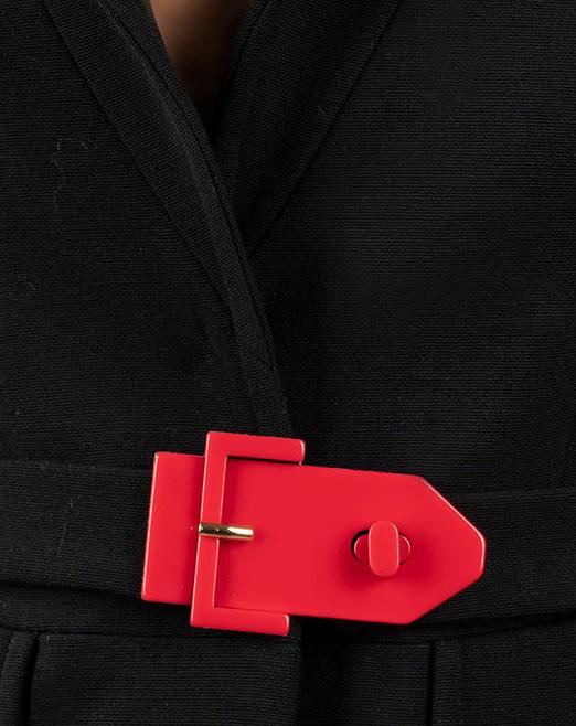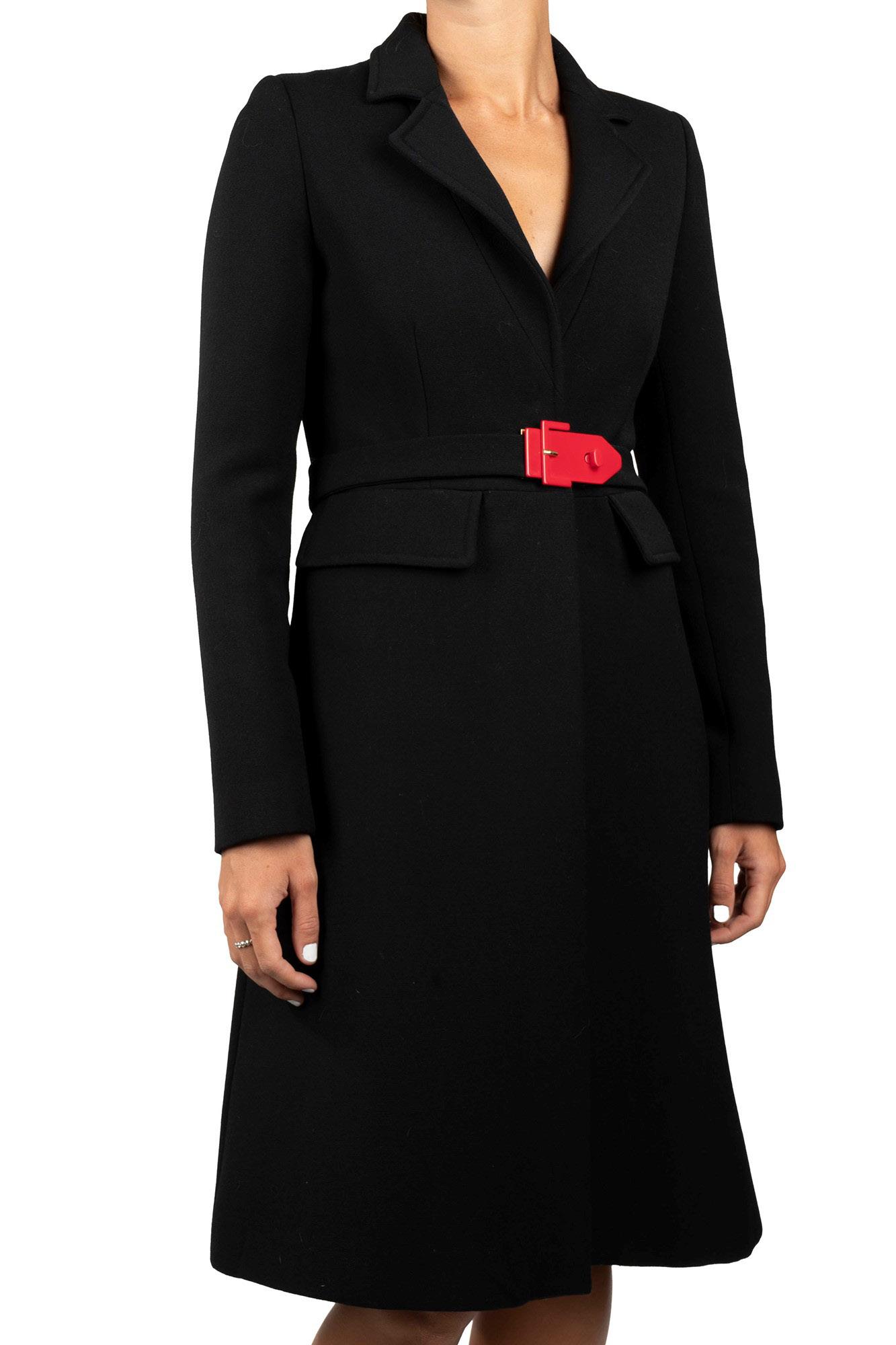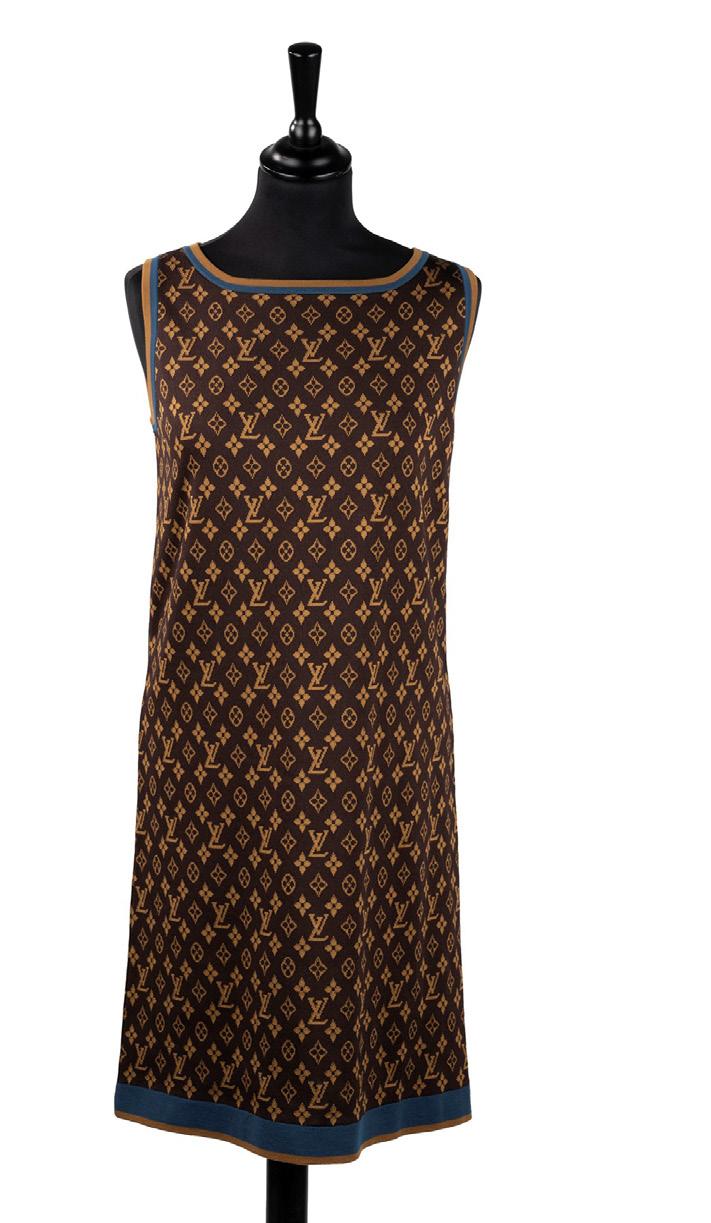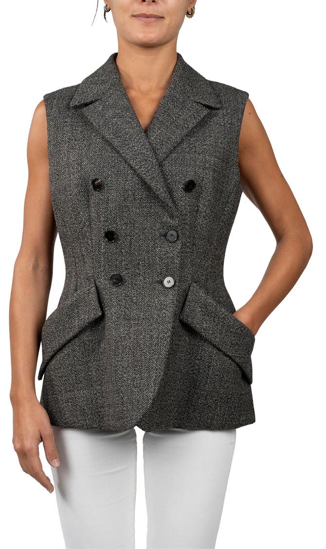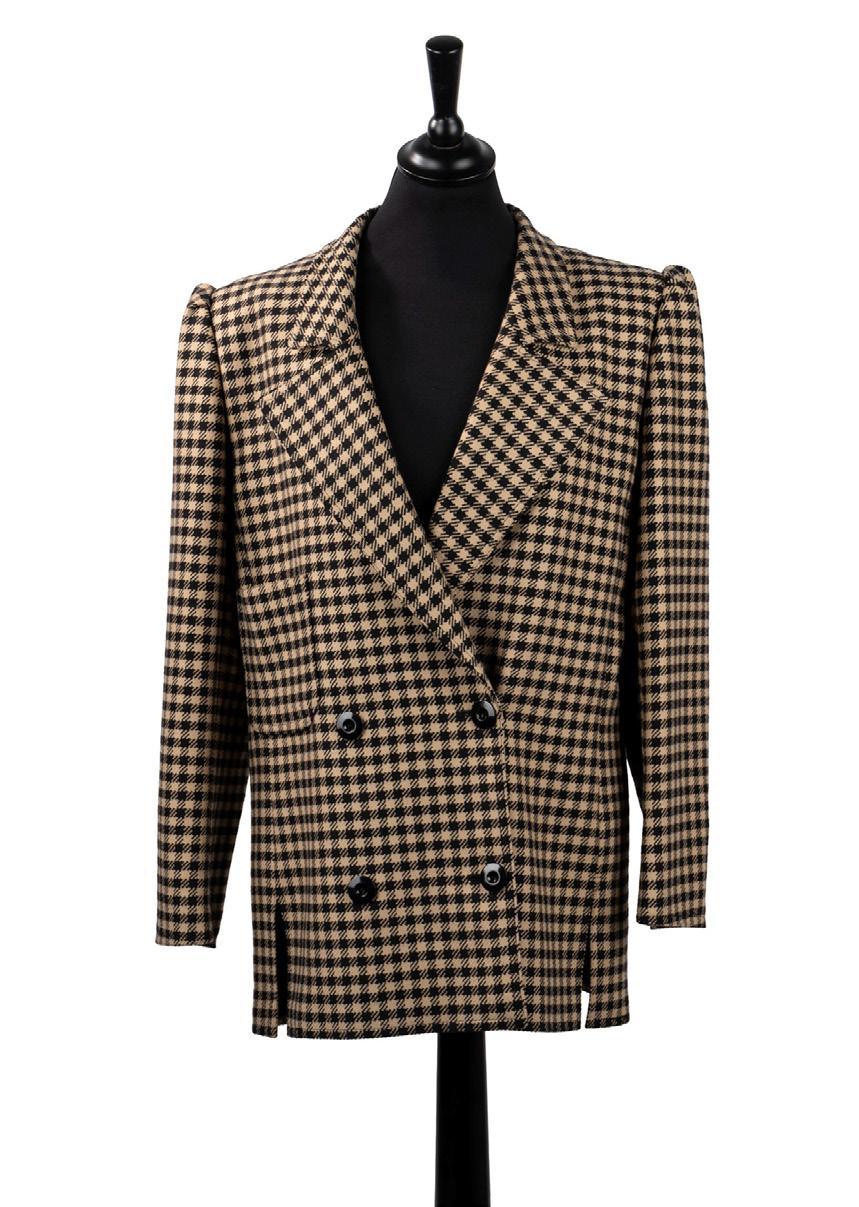 in misto lana color marrone, con spilla in metallo dorato, tg 42 italiana