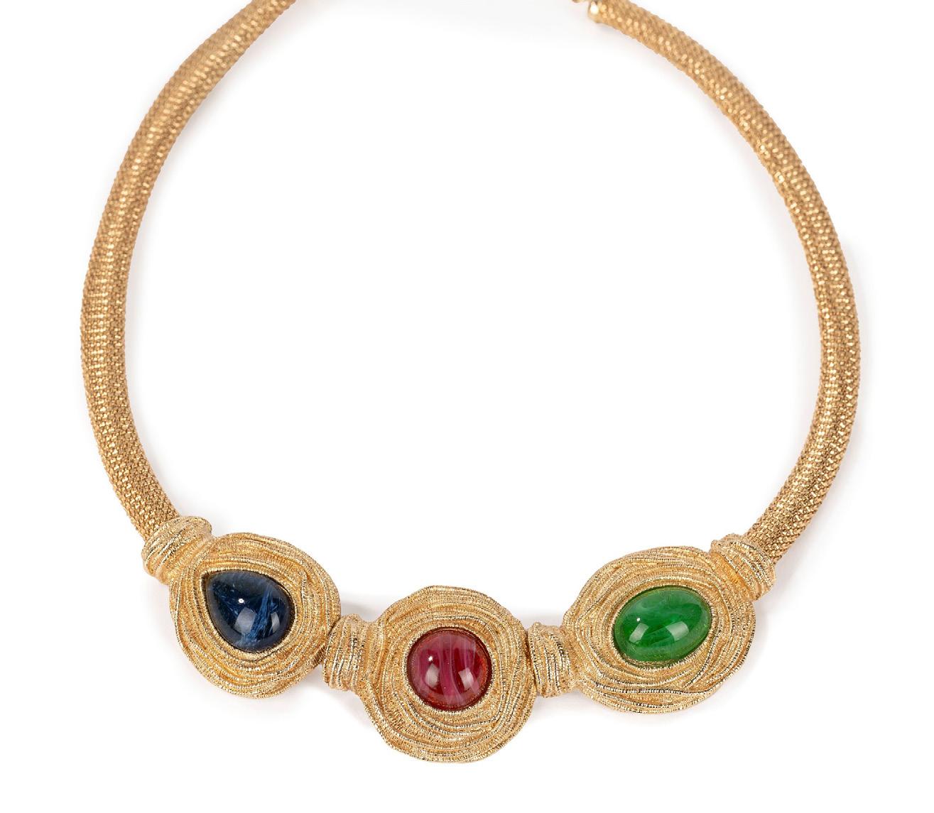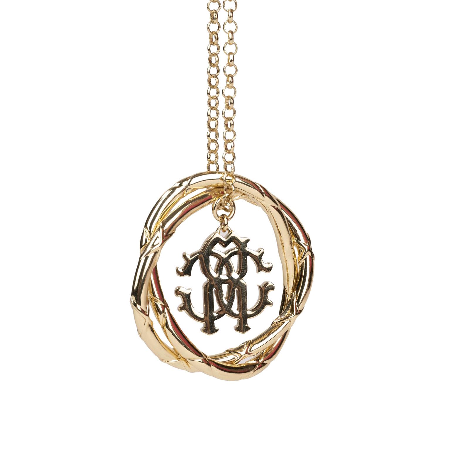 in metallo dorato con due cerchi intrecciati, lunghezza cm 86 Metal gilted necklace, long cm 86