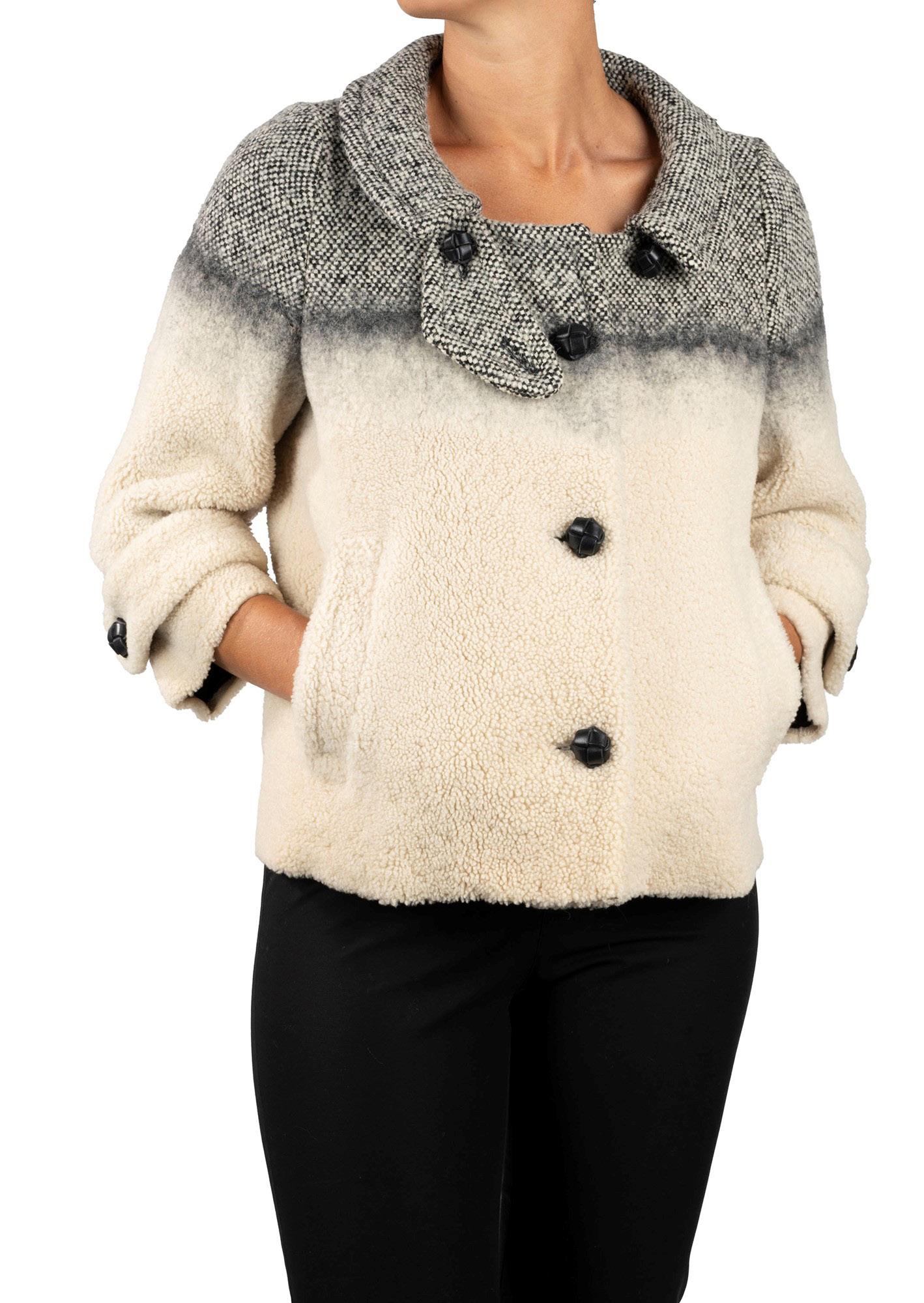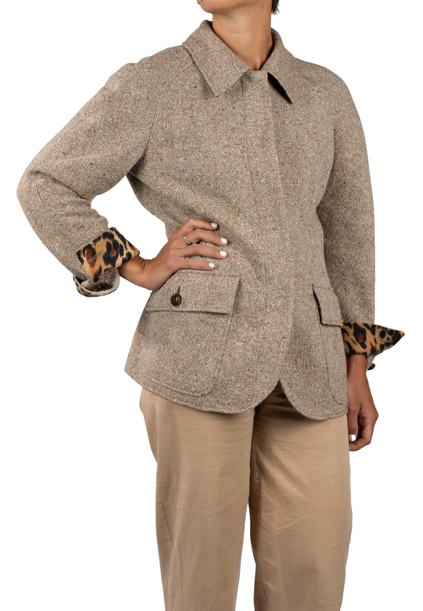 CABAN in maglia color beige con dettagli in stampa animalier, tg 44 italiana Beige colored knitted jacket, animalier details, italian size 44