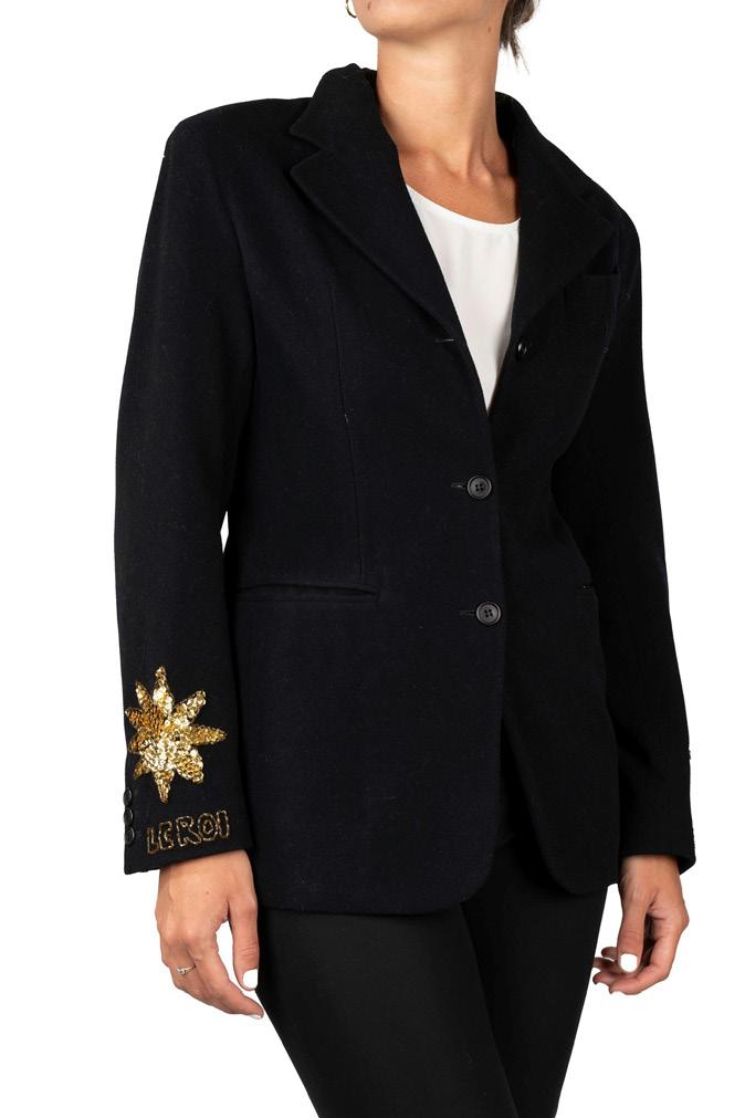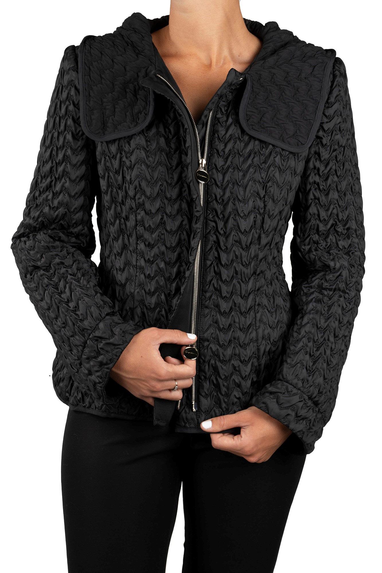 GIACCA CON CAPPUCCIO in tessuto goffrato color nero, chiusura con zip, tg 46 italiana Black jacket, with hood and zip closing, italian size 46