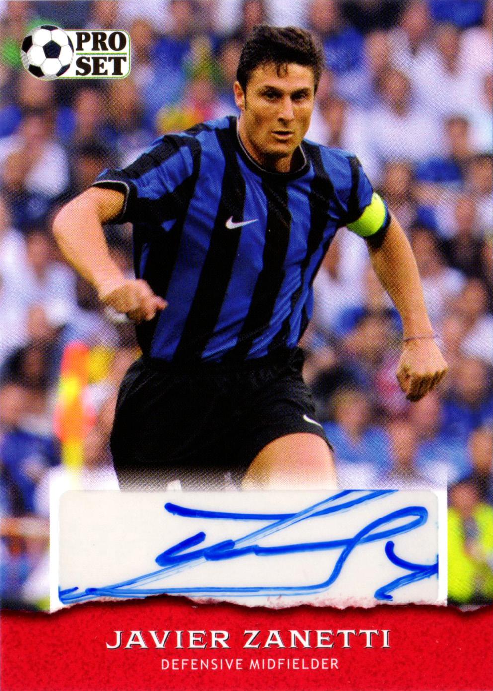 Card autographed by Javier Zanetti, produced and certified by Leaf in 2022.