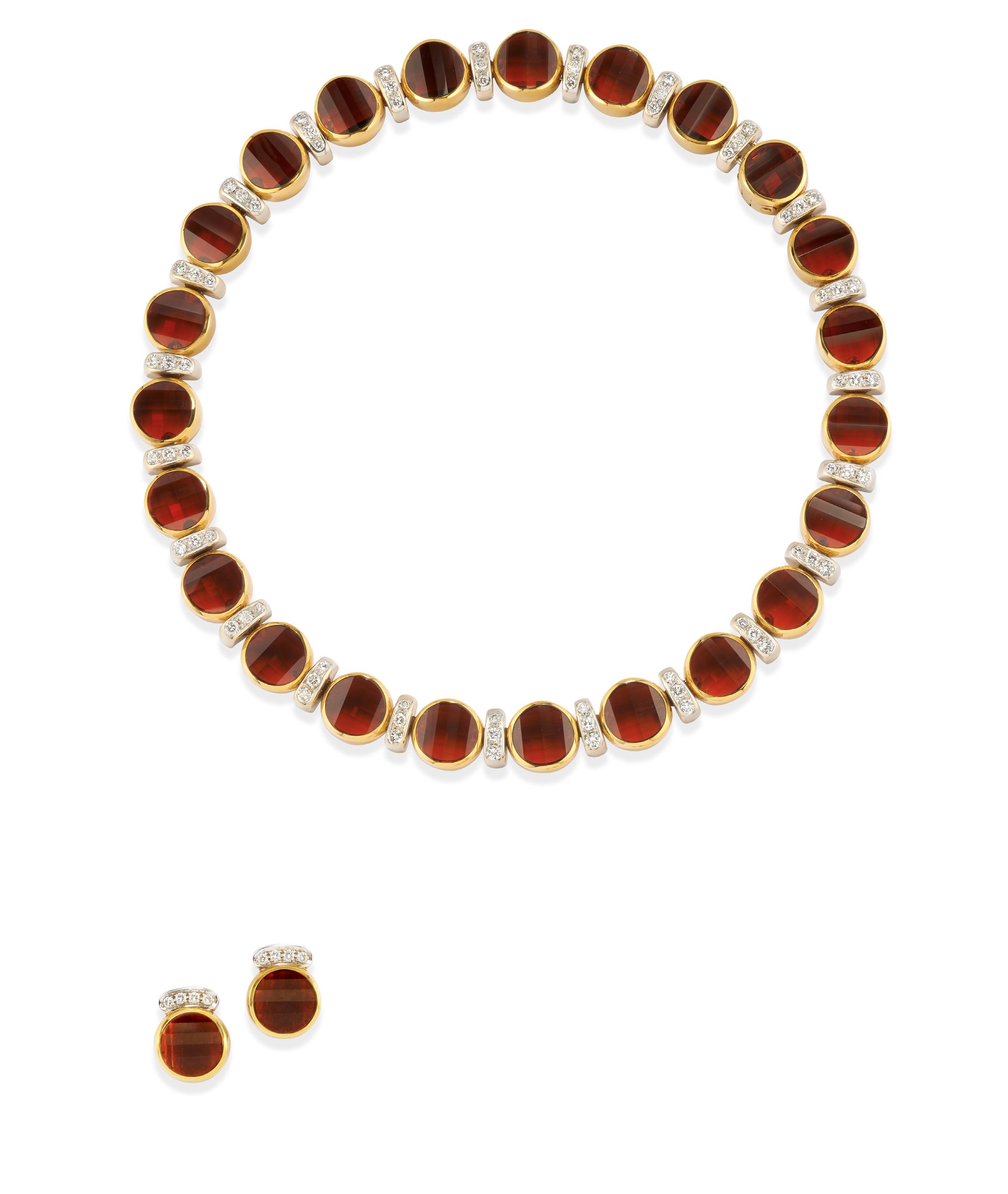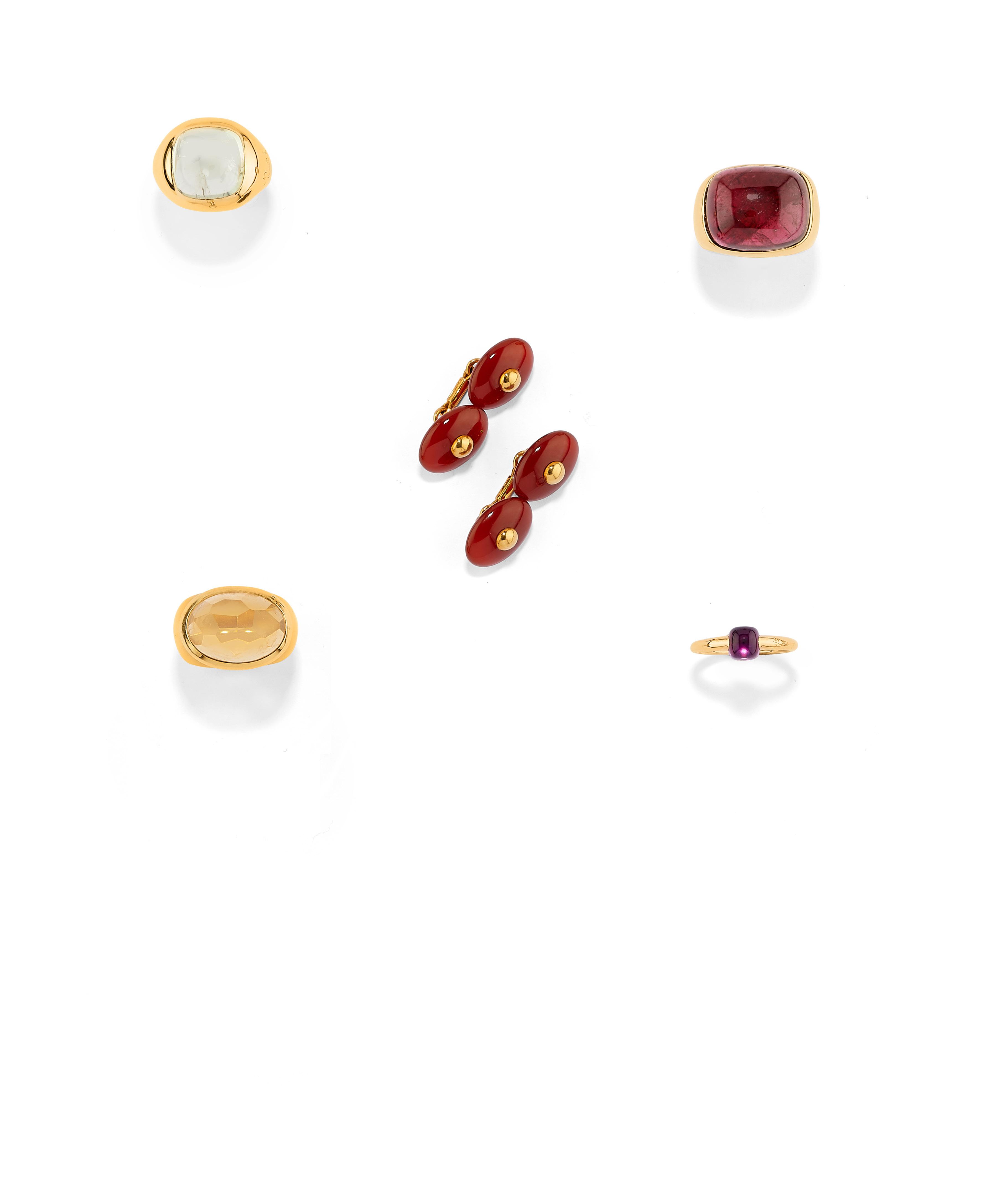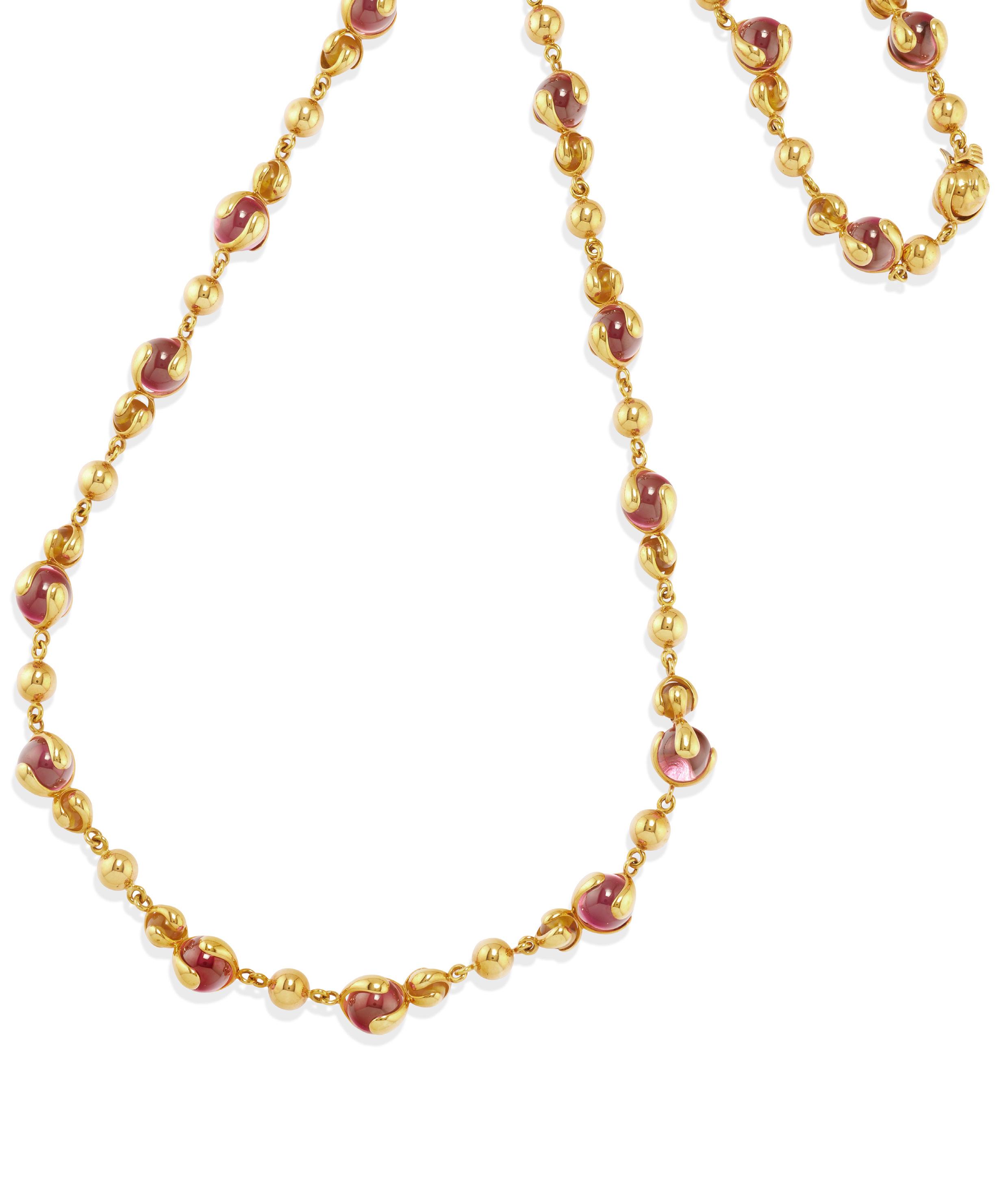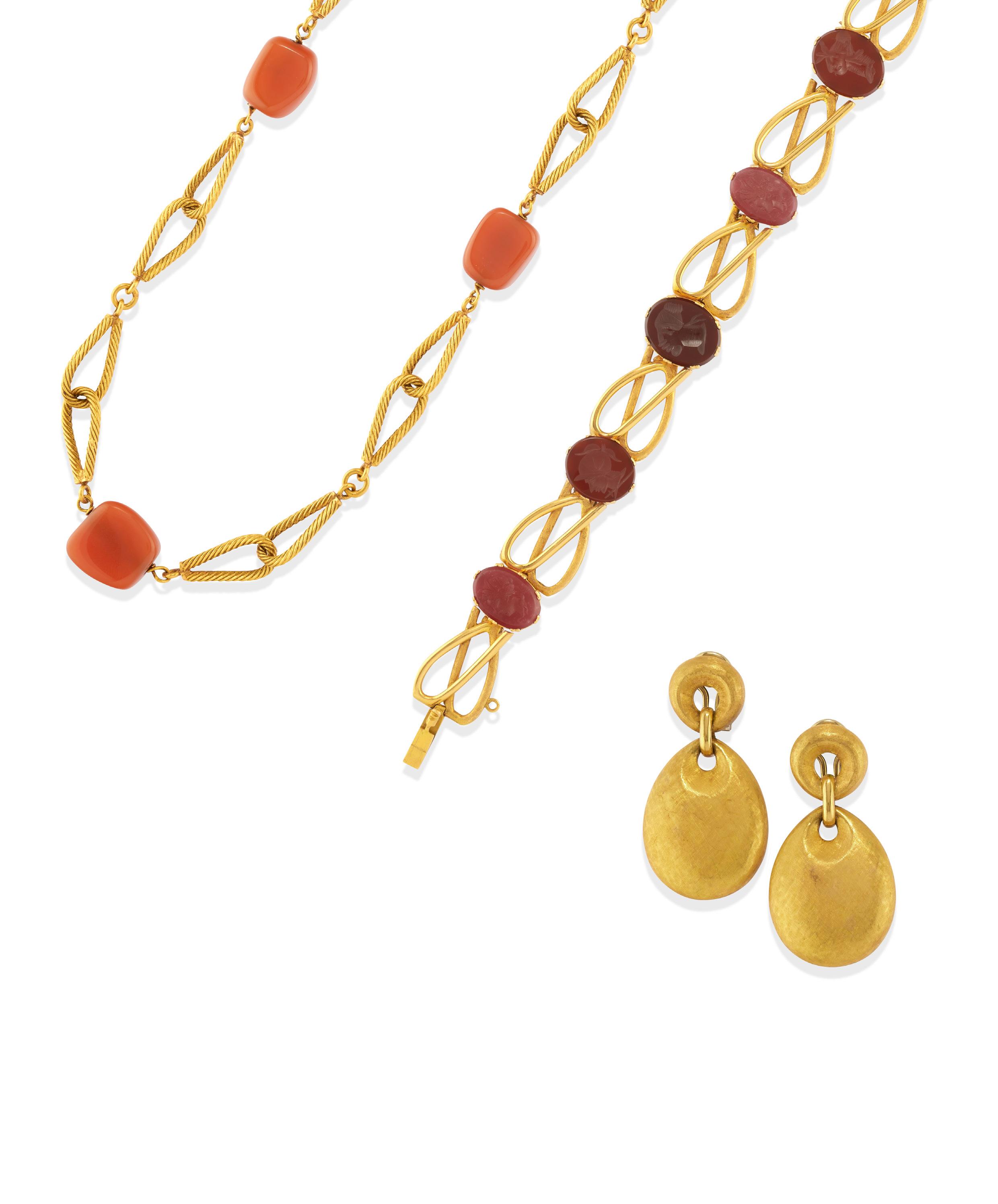 COLOURED STONE NECKLACE, 18k yellow gold, heart motif in centre, oval-cut carnelian cabochon.