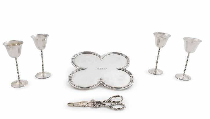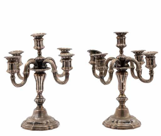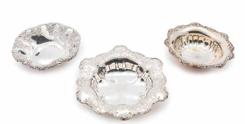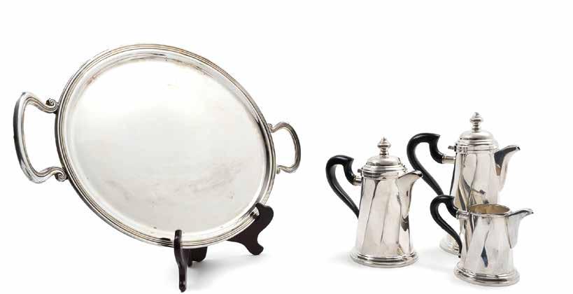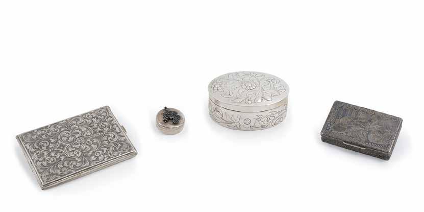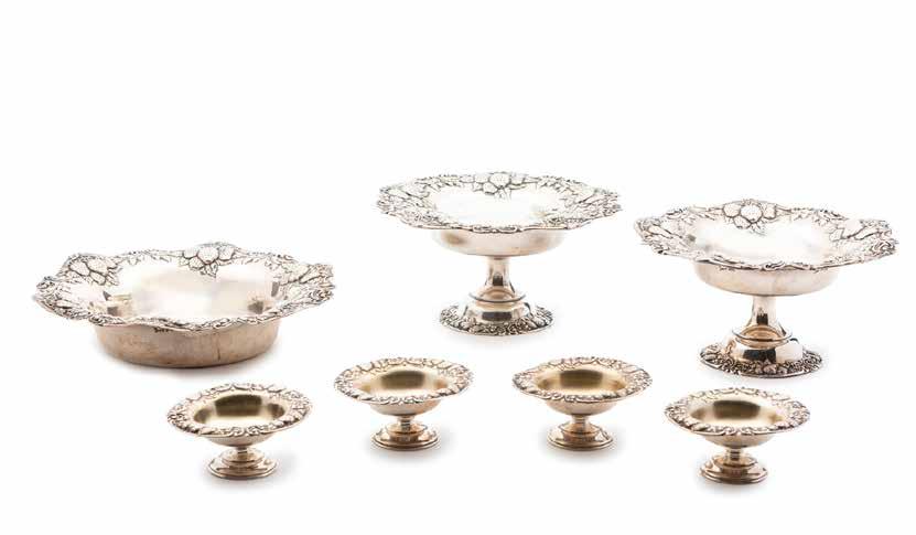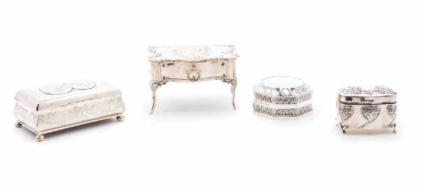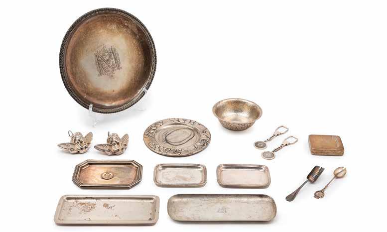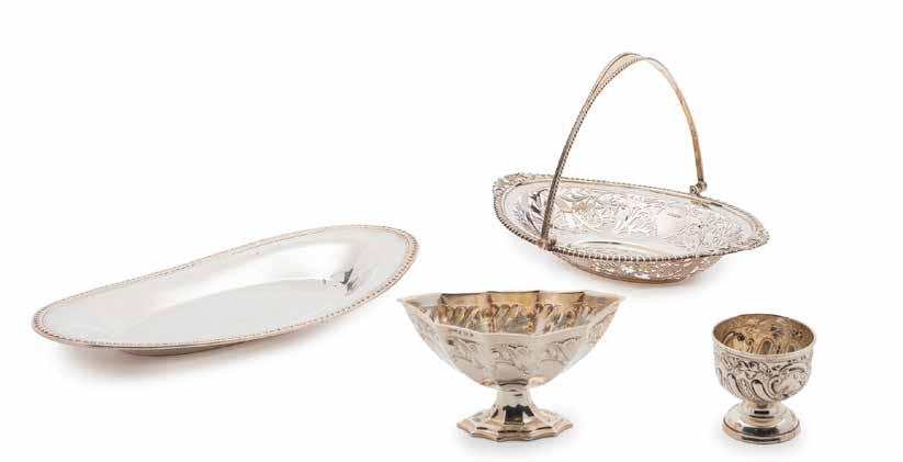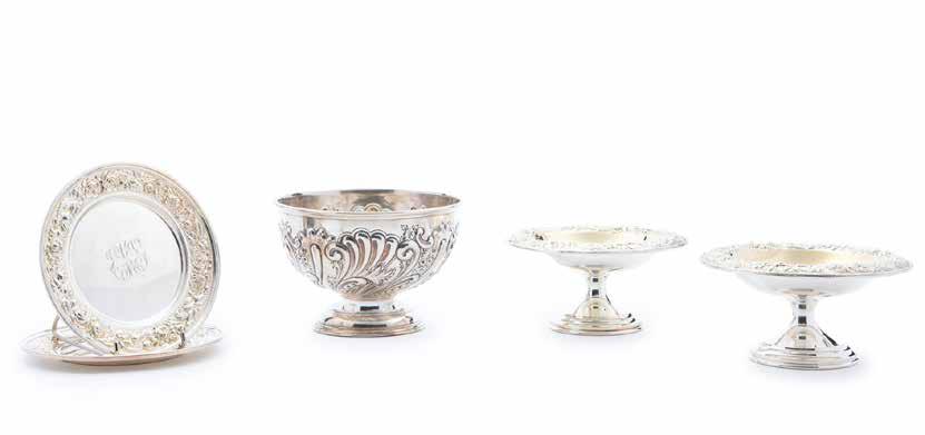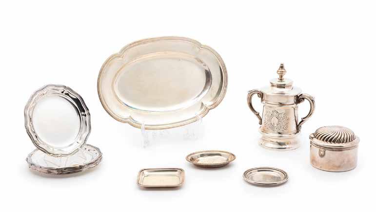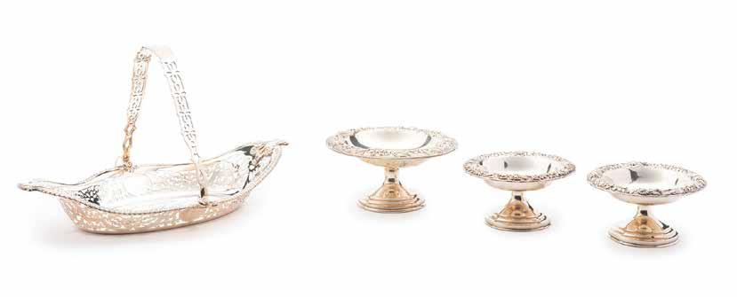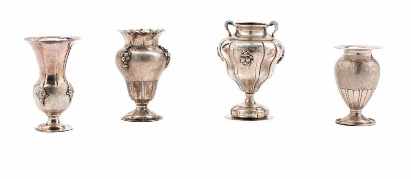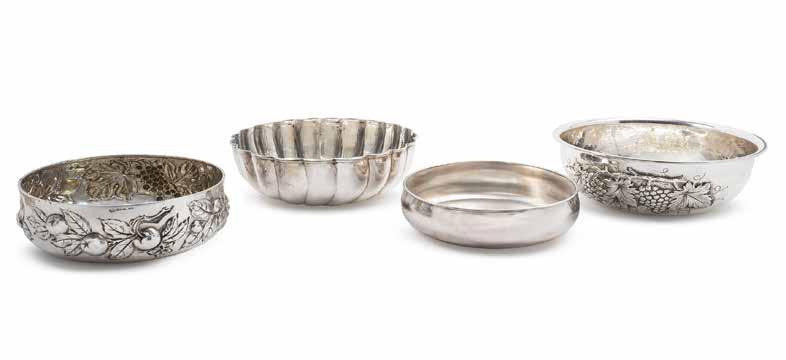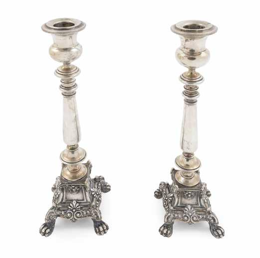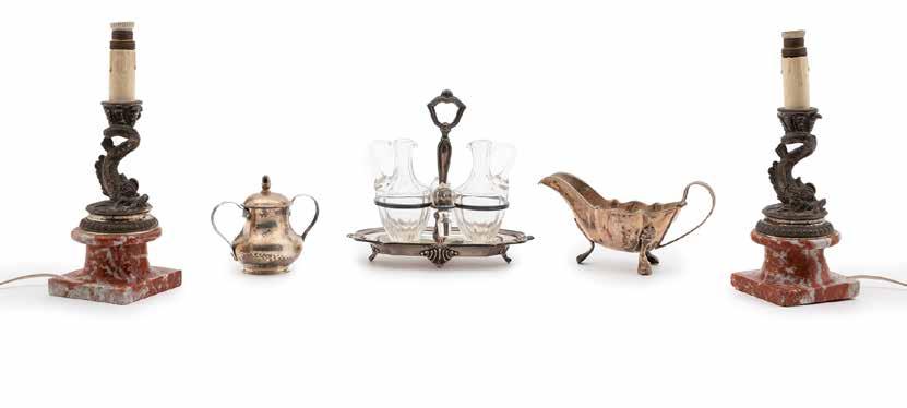 THREE SILVER STANDS, ITALY, 20TH CENTURY, resting on zoomorphic feet, one rectangular with empire-style decoration and two round with openwork border, defects (slight dents). € 450