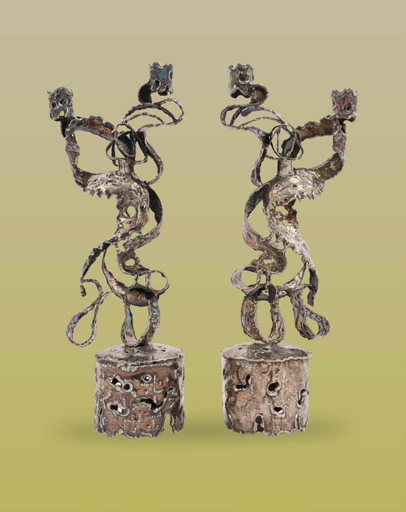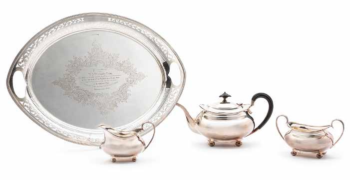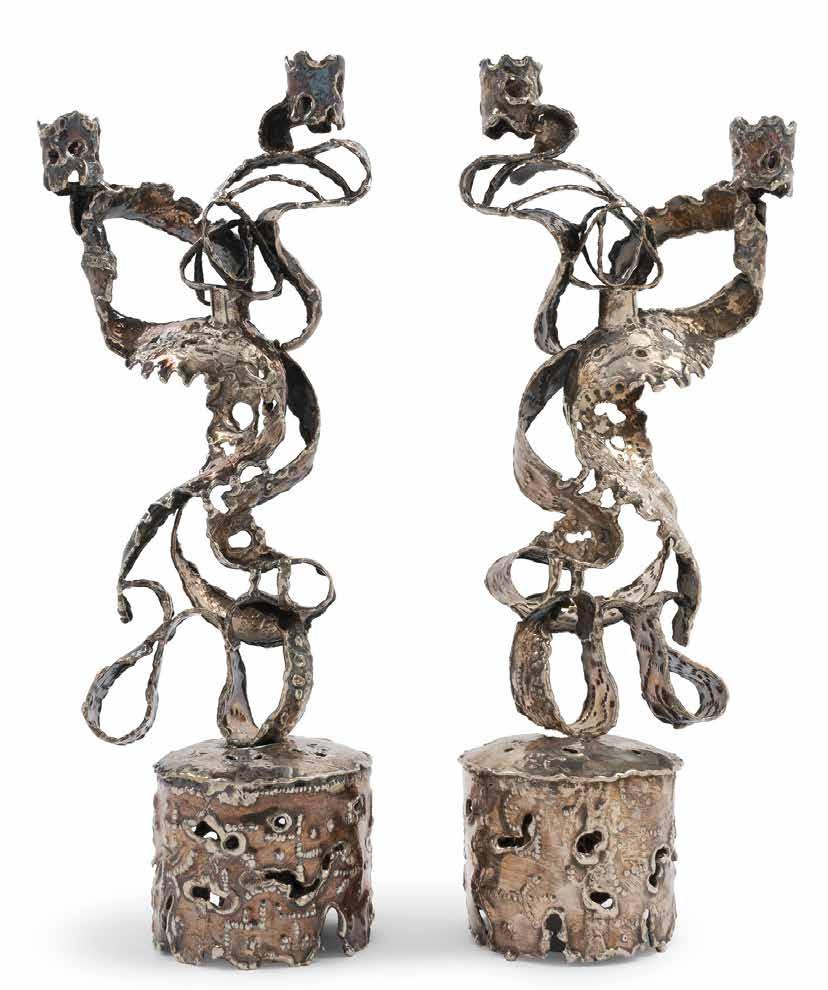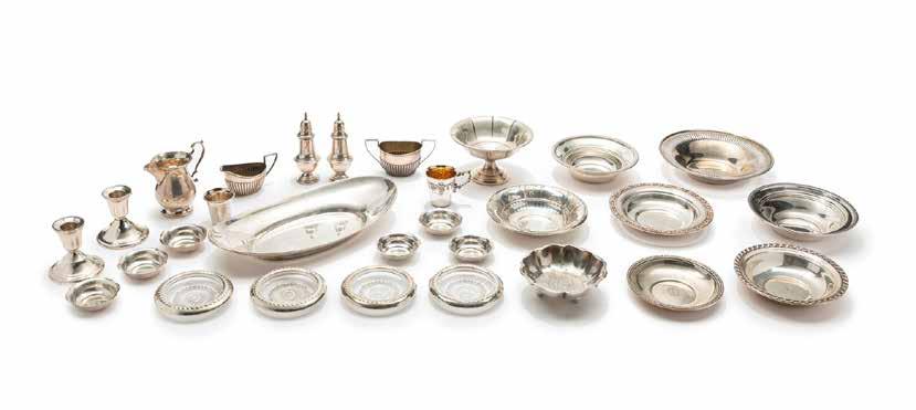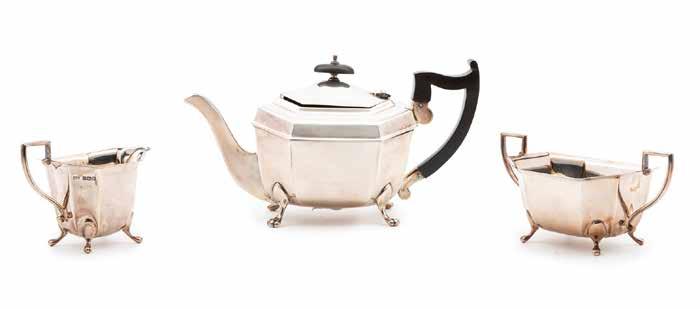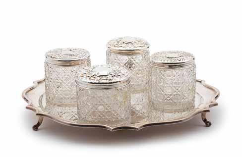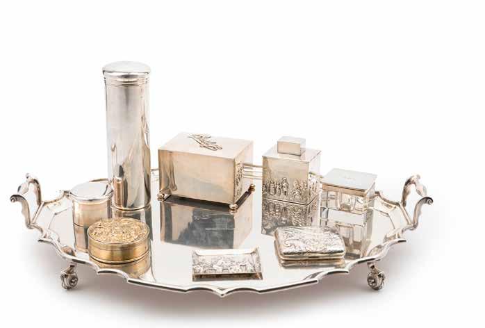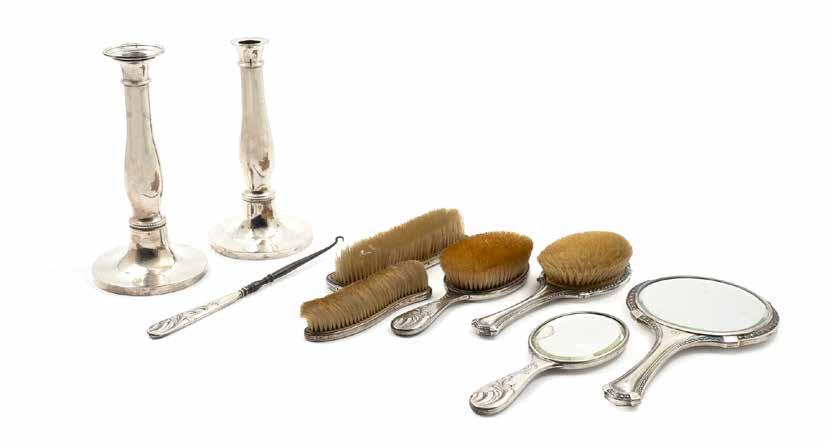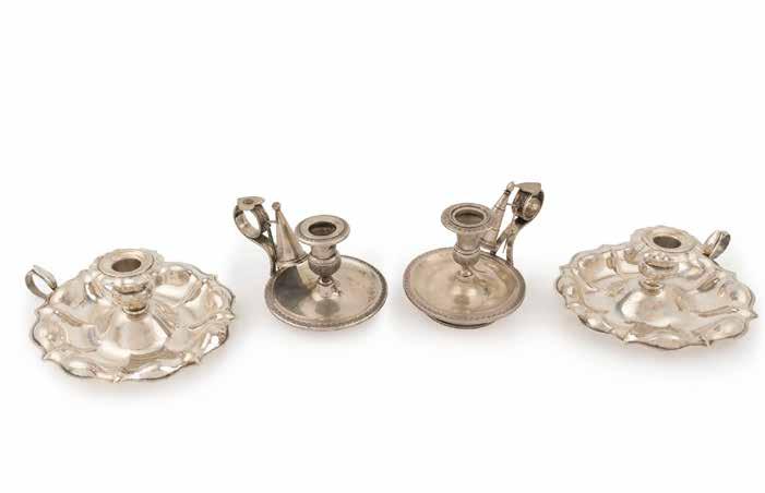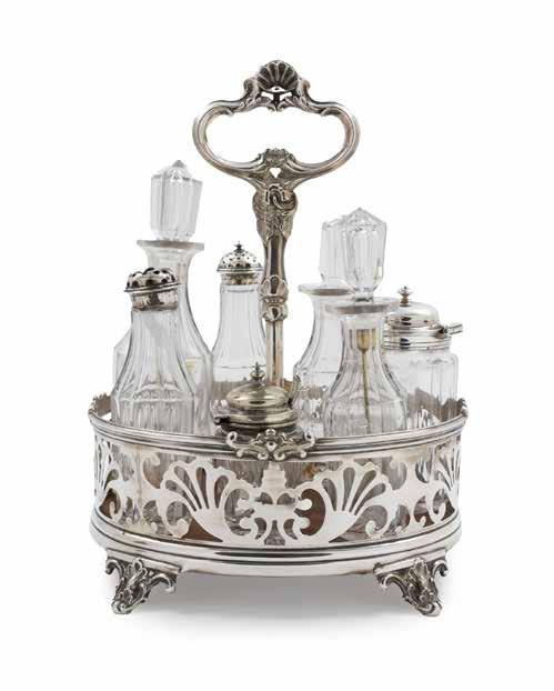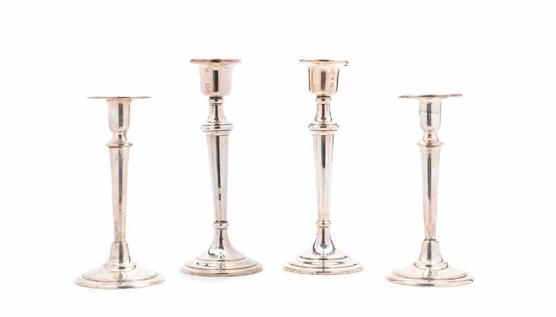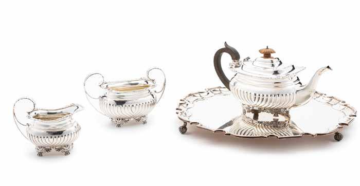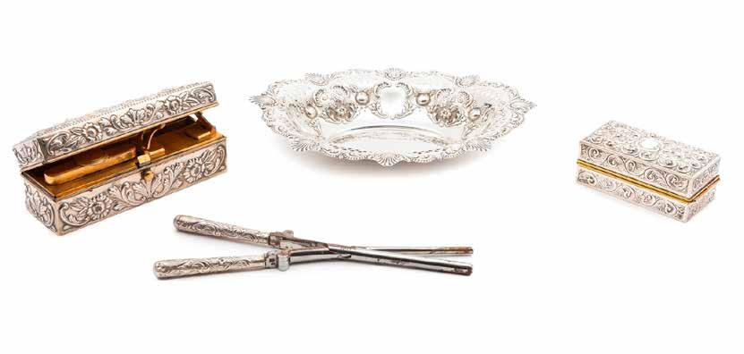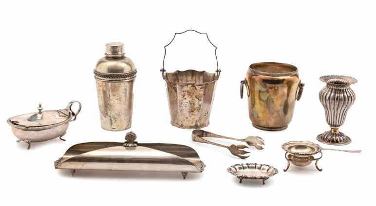 THREE SILVER STANDS, ITALY, 20TH CENTURY, resting on zoomorphic feet, one rectangular with empire-style decoration and two round with openwork border, defects (slight dents). € 450