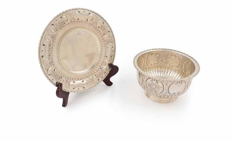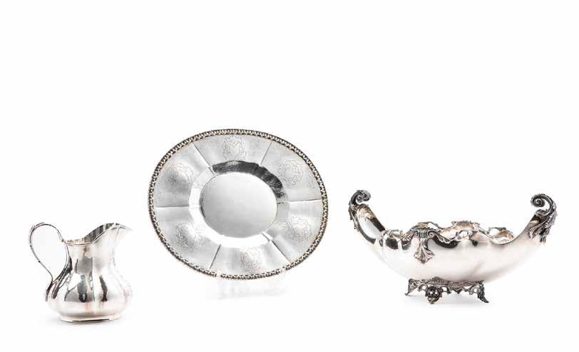 SILVER CENTERPIECE WITH PLATE, ITALY, 20TH CENTURY, with embossed and engraved decoration.