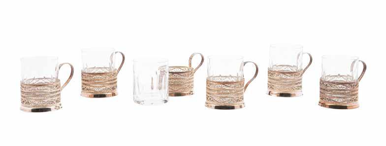 SIX SILVER AND VERMEIL GLASSES, ITALY, 20TH CENTURY, entirely hammered with high relief braid decoration in the centre, defects (dents on the lower edge of three glasses).