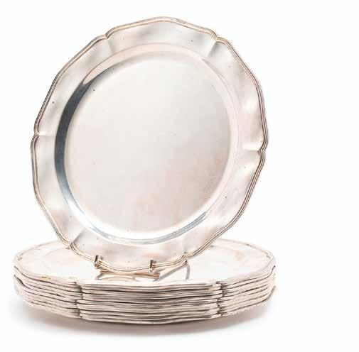 TWELVE SILVER BOWLS, ITALY, 20TH CENTURY, with cord profile.