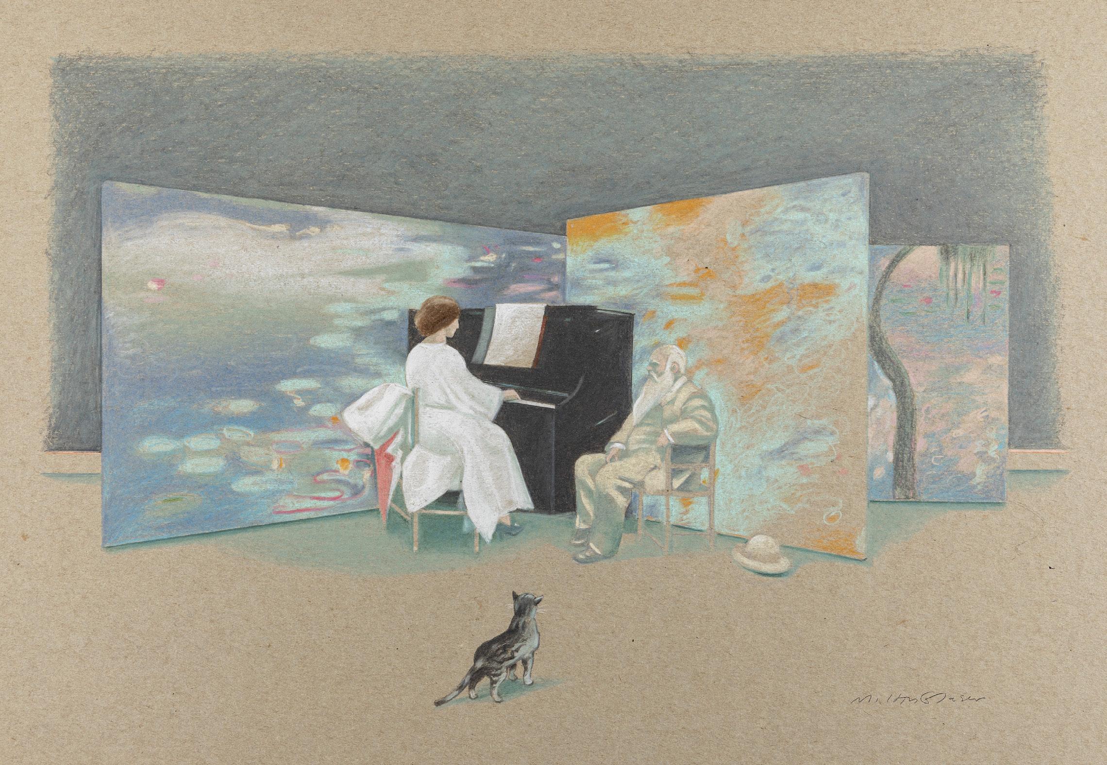 matita e pastelli su cartoncino, 29,5 x 40 cm